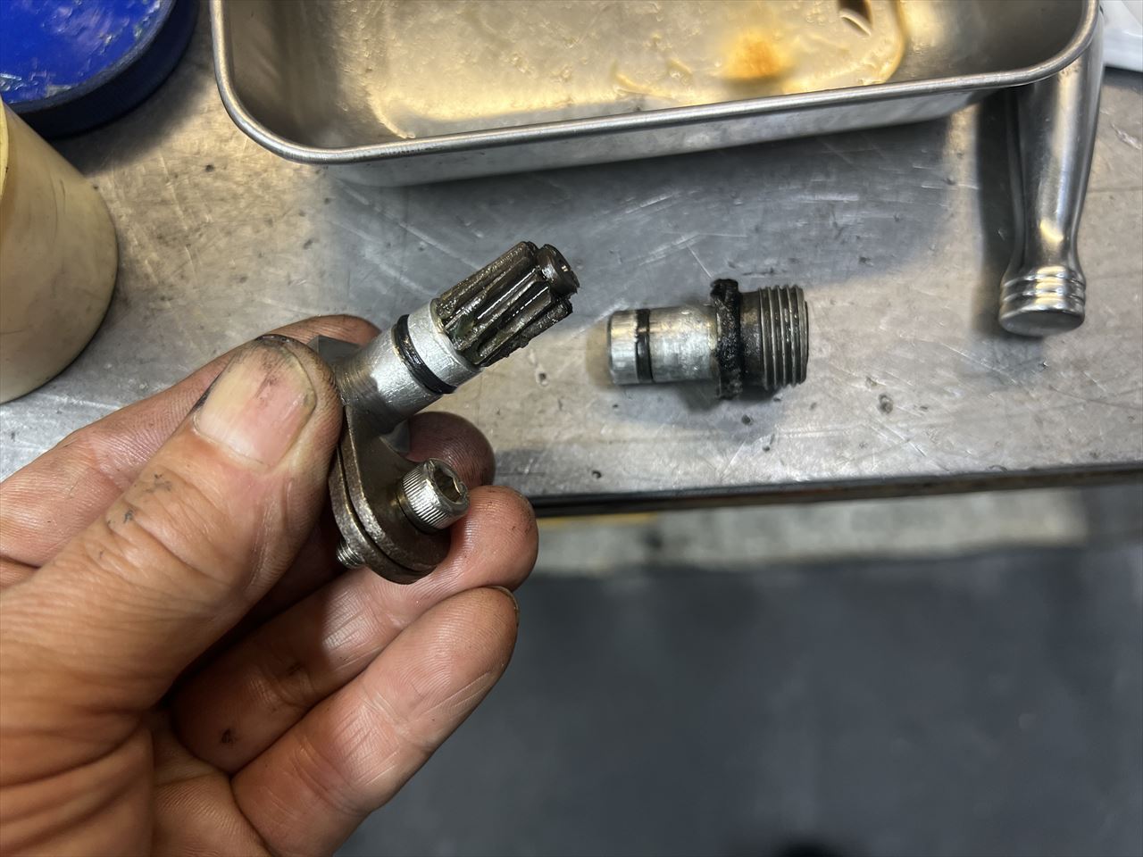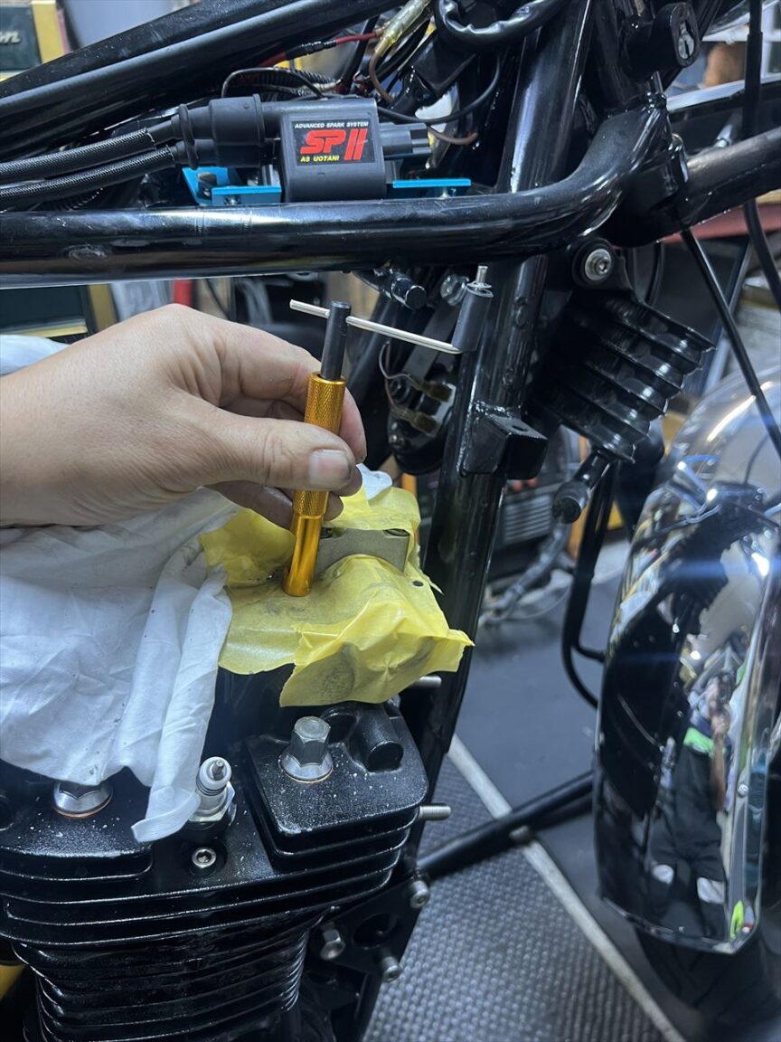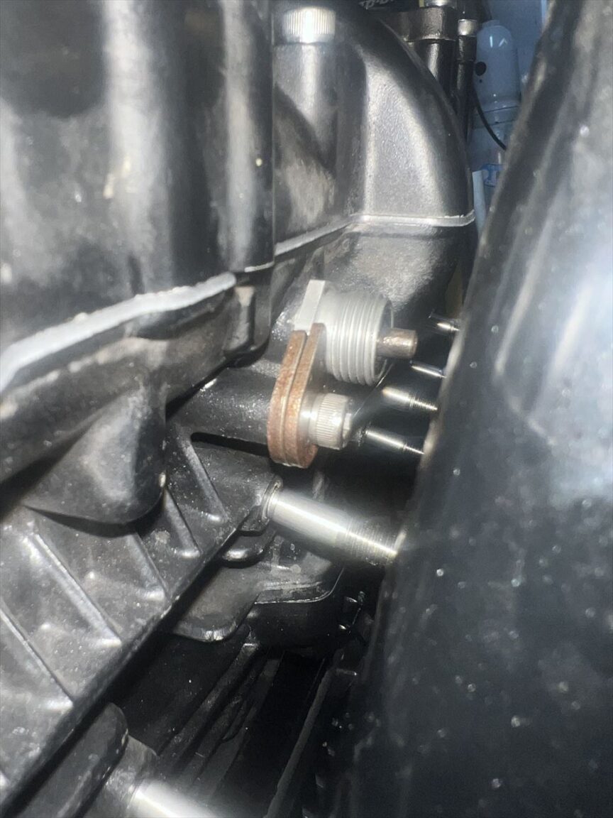 ヘッド側の穴はキズを修正して少し広くなっているので、今後オイル漏れが起きやすいかもしれません。都度Oリング交換で対応します。