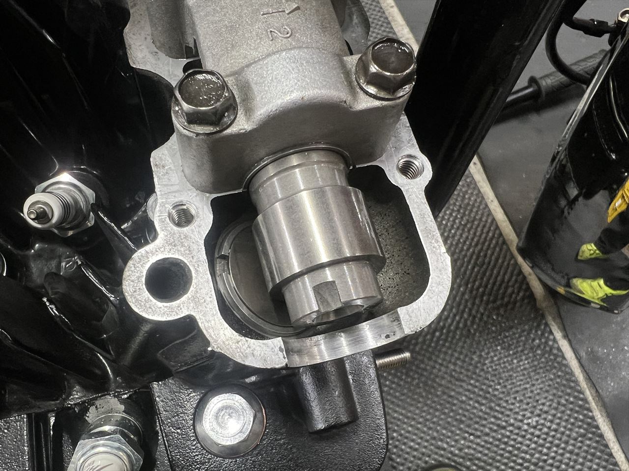 ヘッドカバーを付けようとしたところでネジ山の破損が発覚。ヘリサート加工することに。