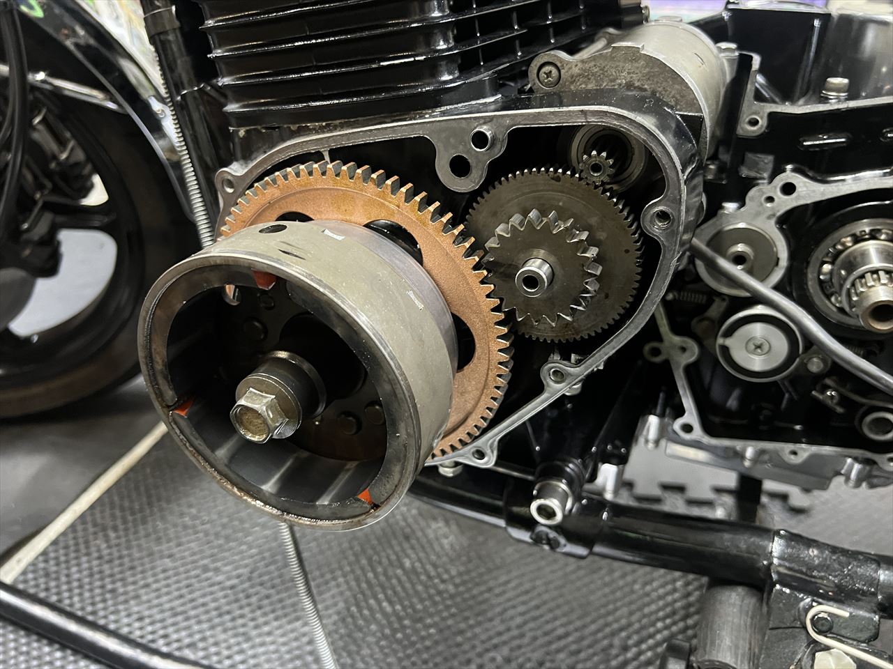 スタータークラッチのギヤは、圧痕がかなり多く凸凹になっています。もうじき滑り始めるので今回新品交換しておきます。