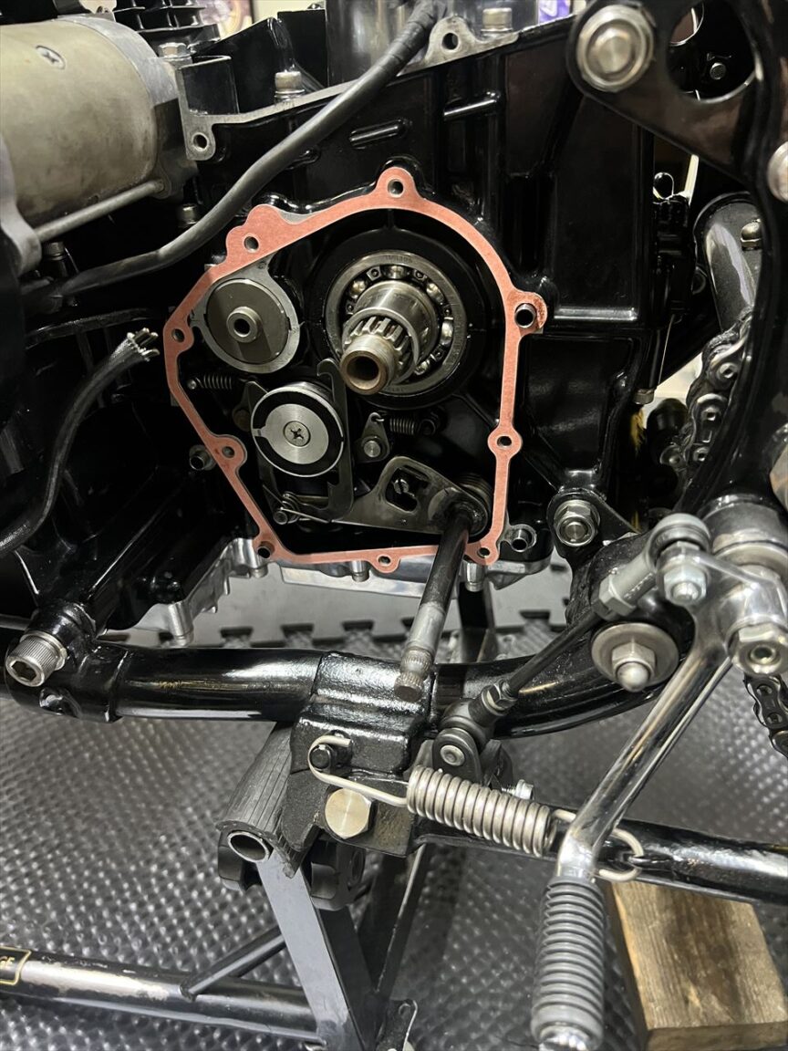 最後にミッションカバー。シフトシャフトをセットします。