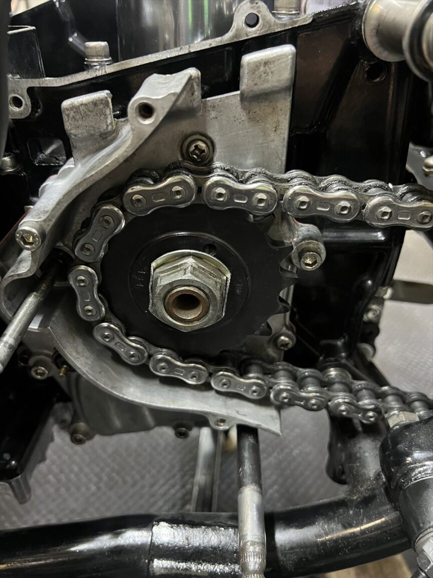 ミッションがバーはチェーンで大きく削れていたので、別の中古良品に交換します。