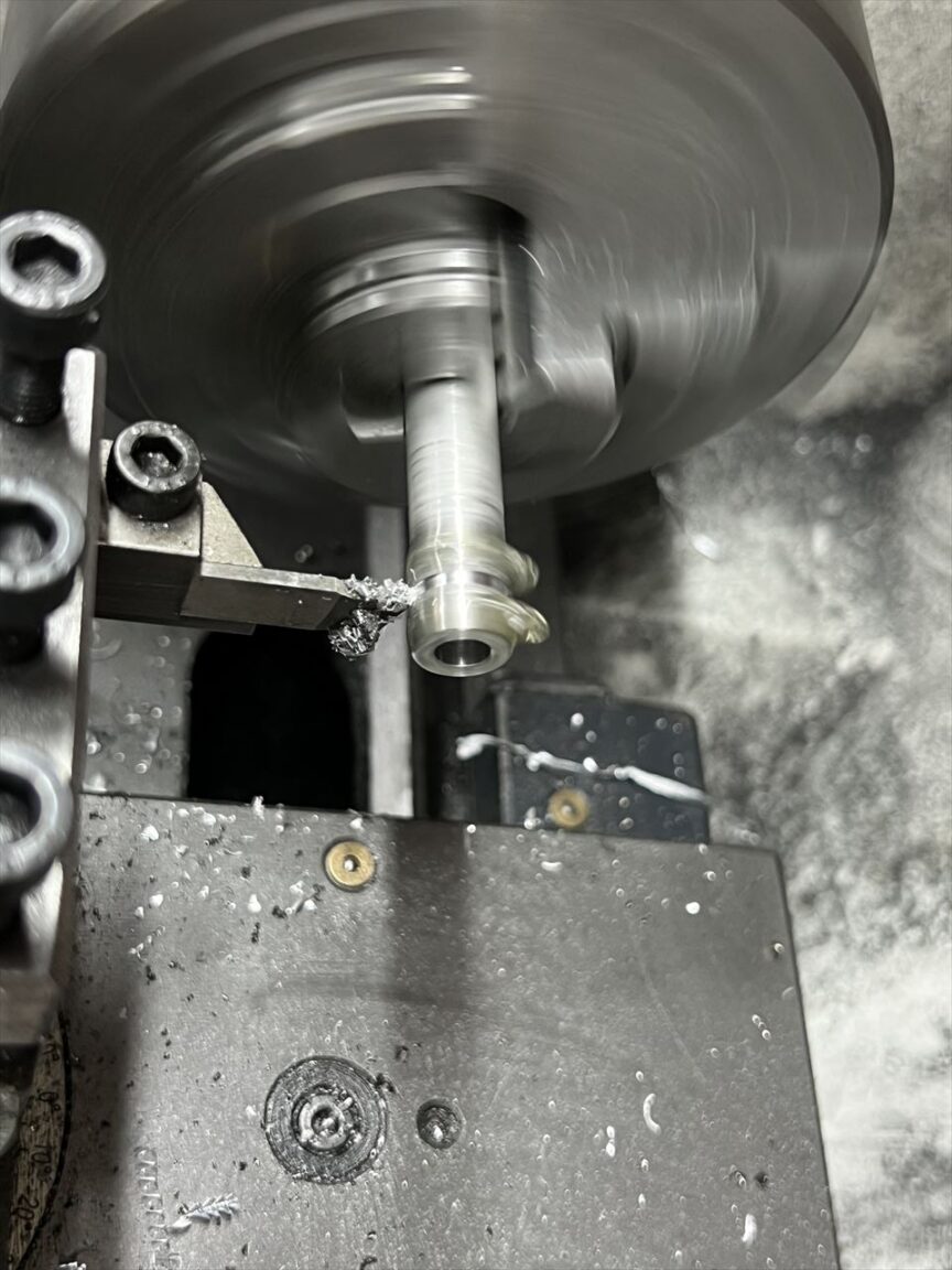 5ミリのこのようなスペーサーは市販品が無いようなので、アルミ棒から切り出します。