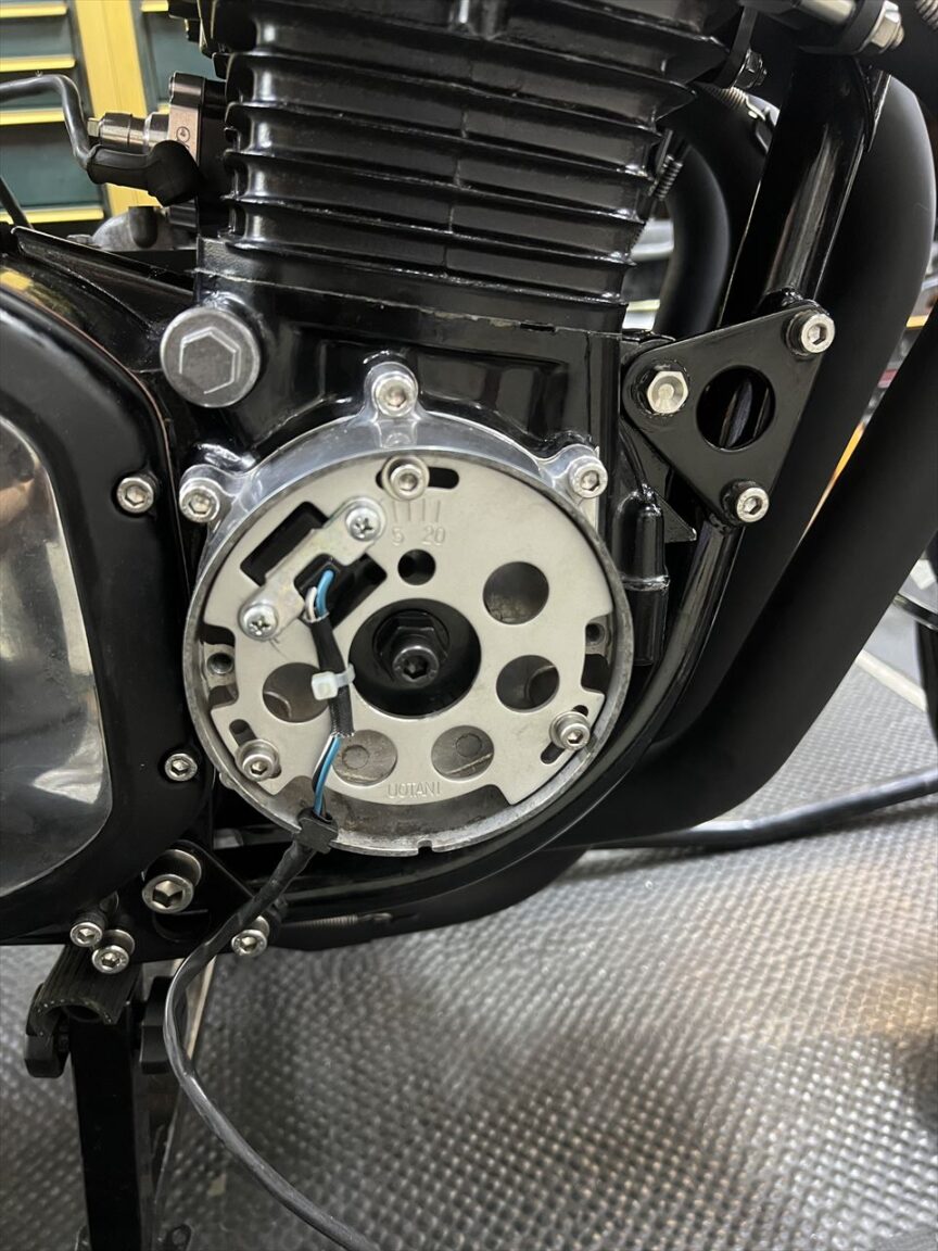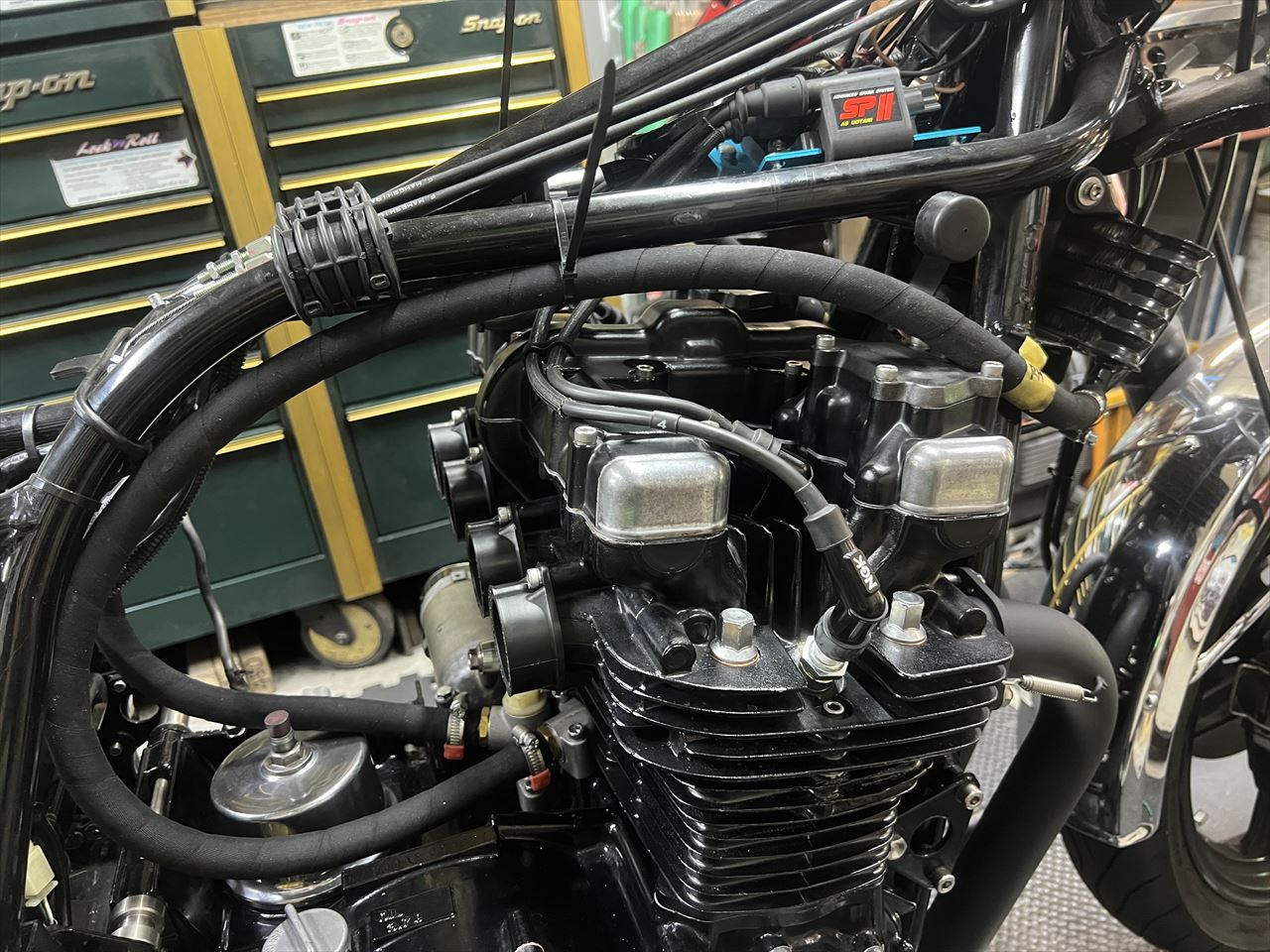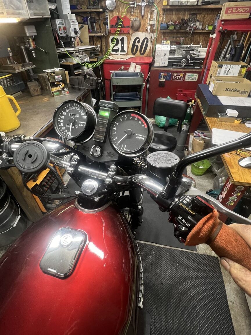 エンジン始動OKです。バッテリー電圧が少し低めではありましたが、スターターモーターのクランキングが遅かったので、1200cc+ハイコンプピストンエンジンとしては、このスターターは力不足かもしれません。純正の高出力型に交換した方がいいかもしれません。