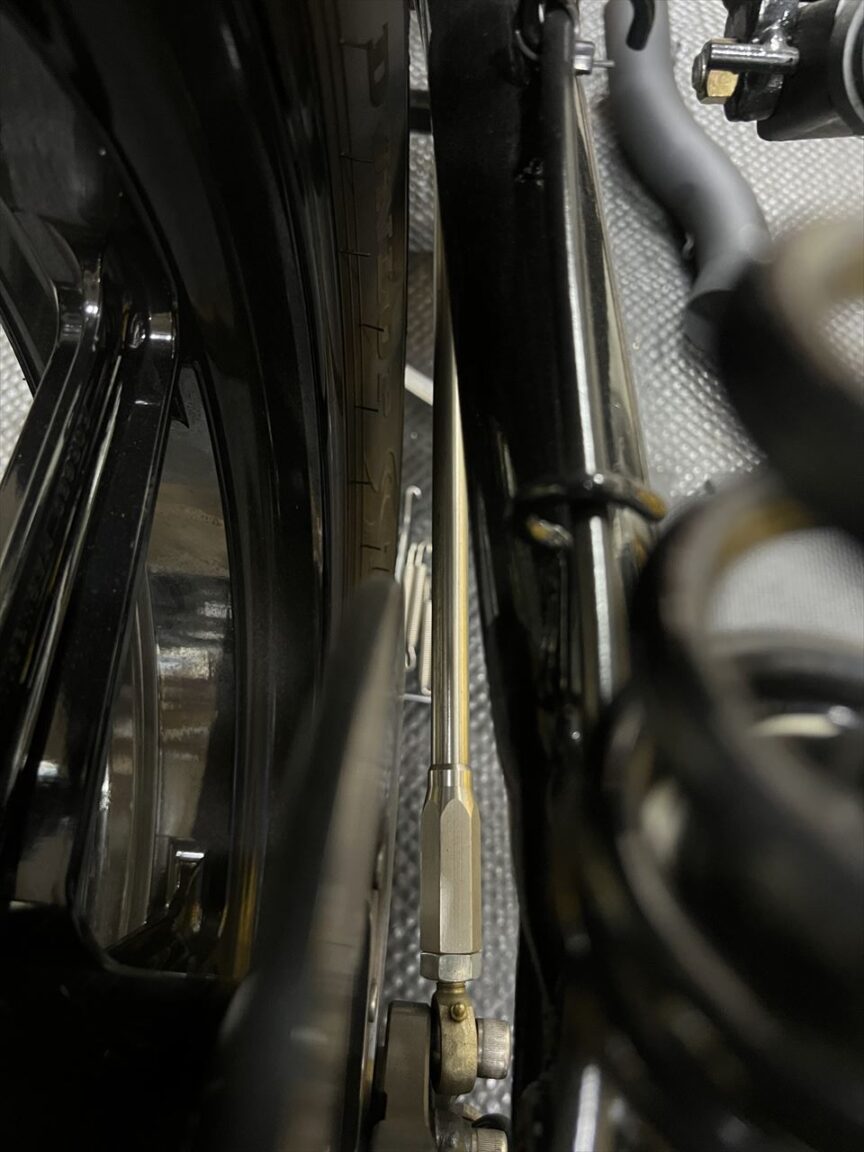 現状は妙に斜めに引っ張り、タイヤとのクリアランスもギリギリです。