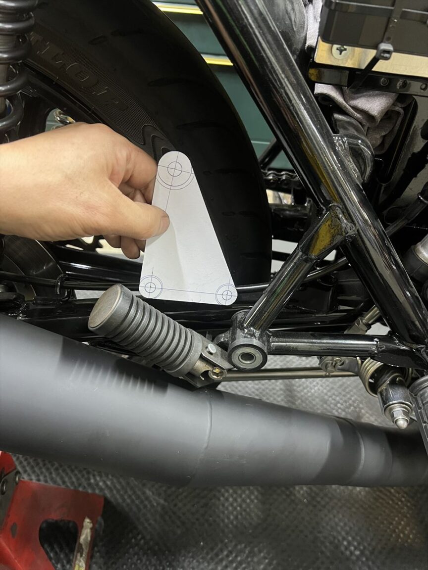サイレンサーのステーは現車合わせで作るタイプなので、形状を決めます。