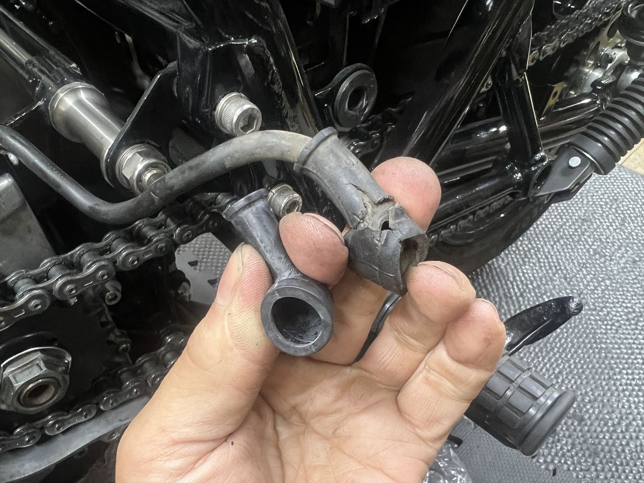 スターターケーブルのターミナルブーツは、劣化しているので新品に交換します。