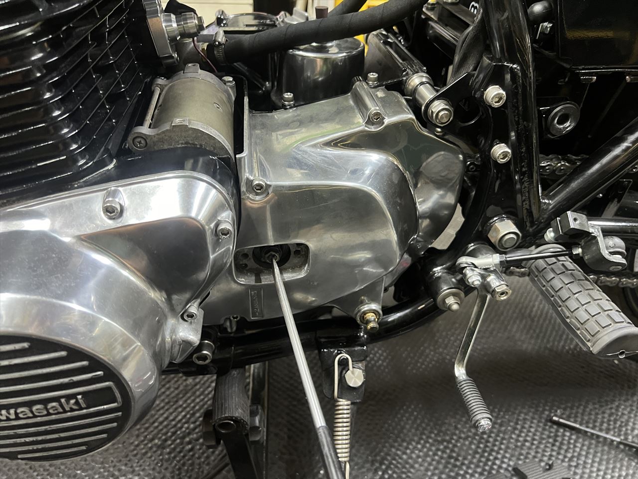 スプロケカバーを付けてクラッチレリーズの遊びを調整します。