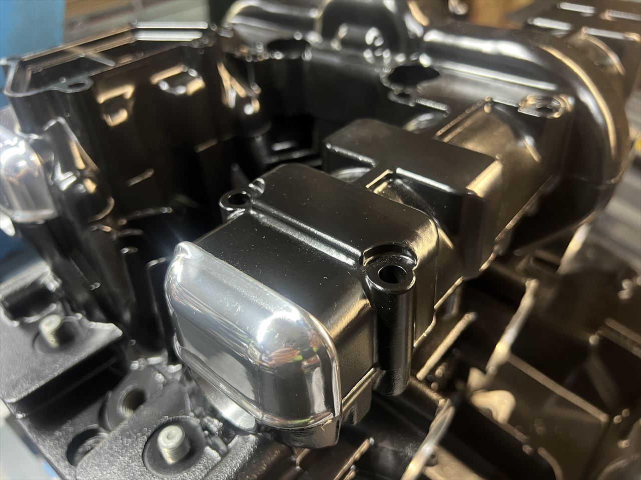 ほぼ純正同様な仕上がりとなりました。黒いところは黒、光るところはポリッシュ、といった感じ。セラコートは塗膜が薄いので純正のような質感、加えて塗装が非常に強いです。
