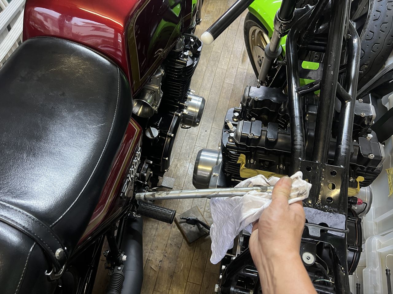 スローが濃いようなのでパイロットスクリューを2回転戻しから1回転戻しに変更しておきます。明日はエンジンの慣らし運転とキャブセッティングです。