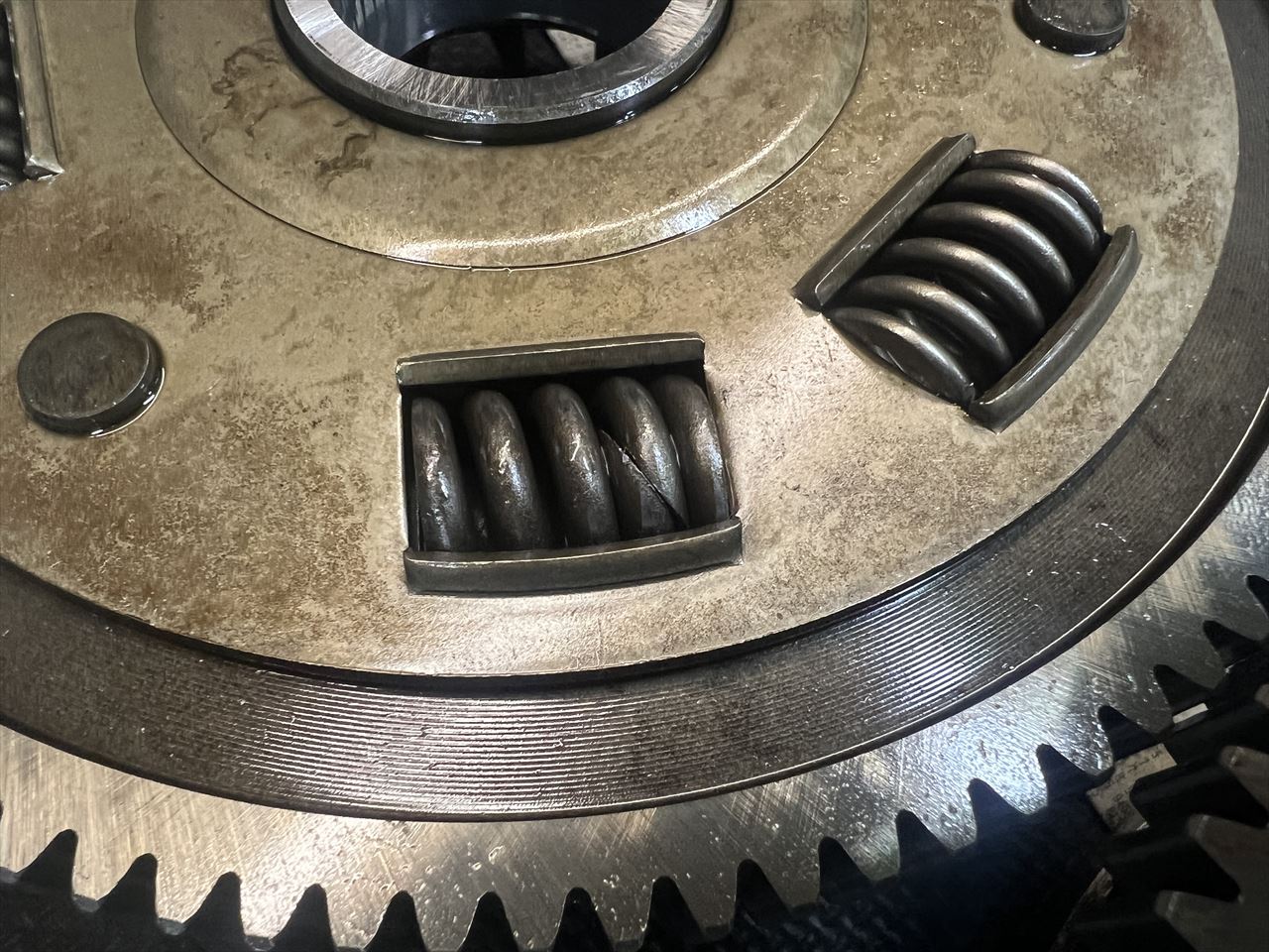 今回の物はダンパースプリング6本のうち2本がパックリ折れていました。1本目はこちら。きれいに重なっていると見落としがちです。