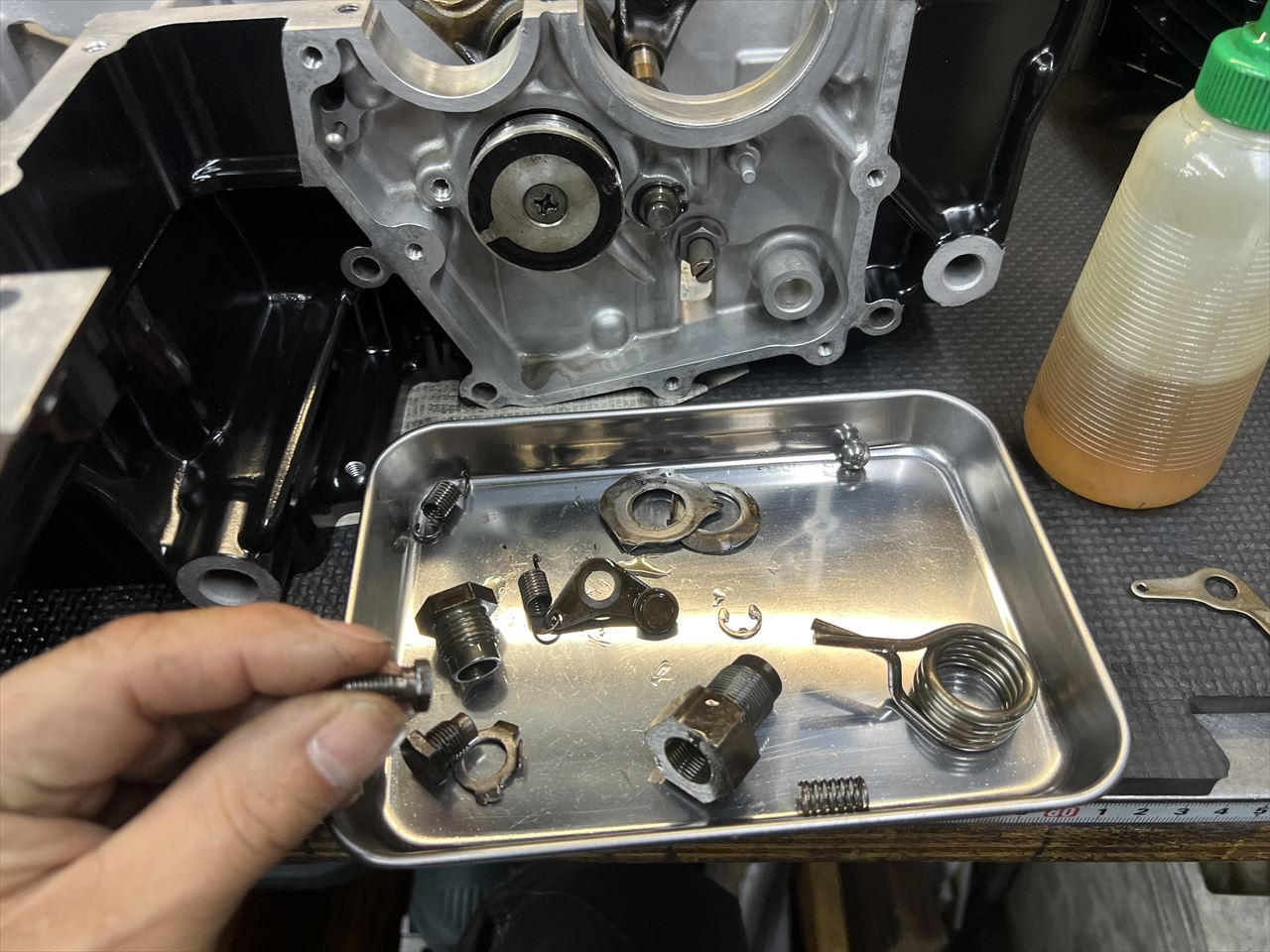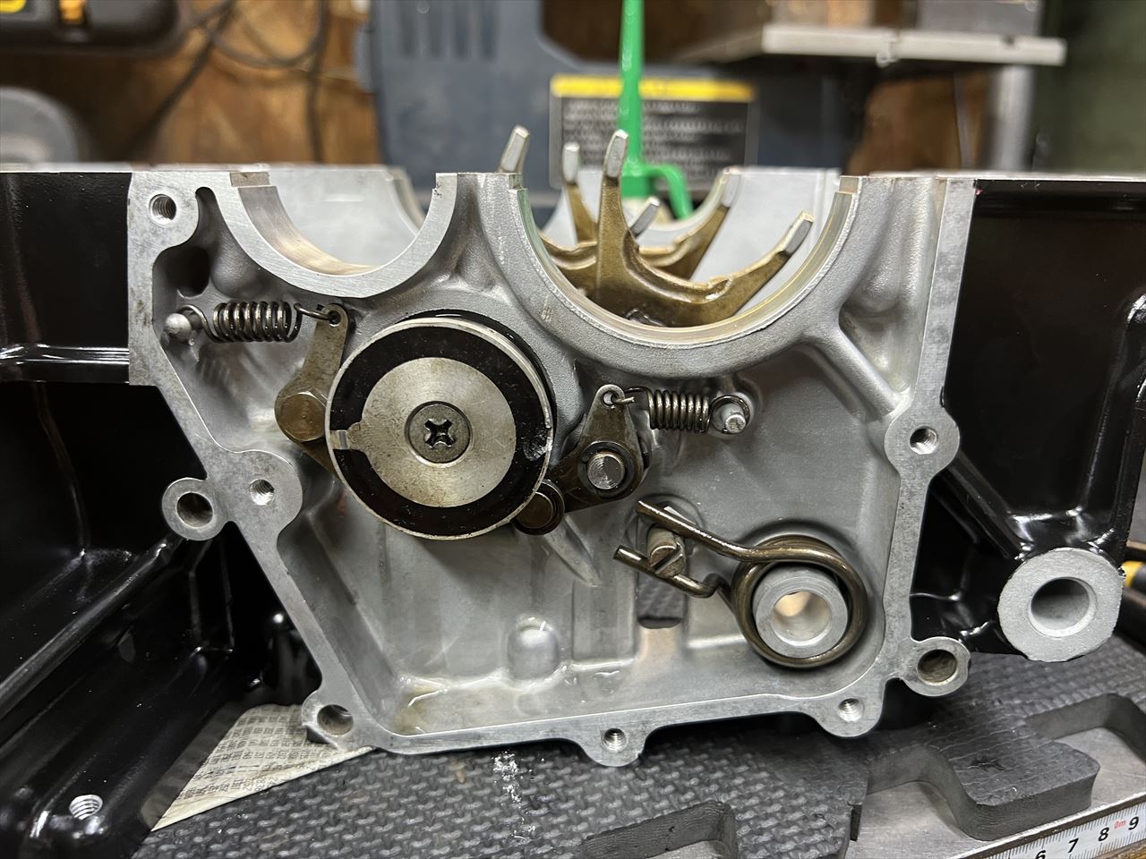 塗装が完成したのでエンジンを組み立てます。ベアリング破損の影響でクランクケースは今回交換したものです。
