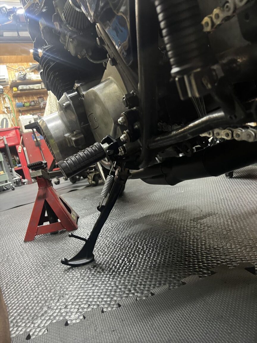 車高が特に低いわけでもないので、サイドスタンドを短くすることで対応します。付いていたのはドレミのサイドスタンドのようです。