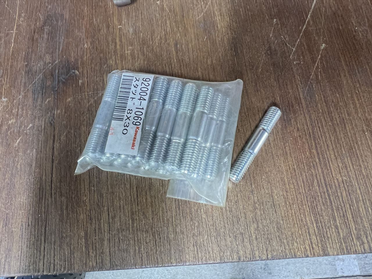 ここの純正品は生産終了しているので、代替品としてこちらの純正スタッドを使います。これはエキゾーストやフォークのアクスルクランプなどにちょうどいい長さです。