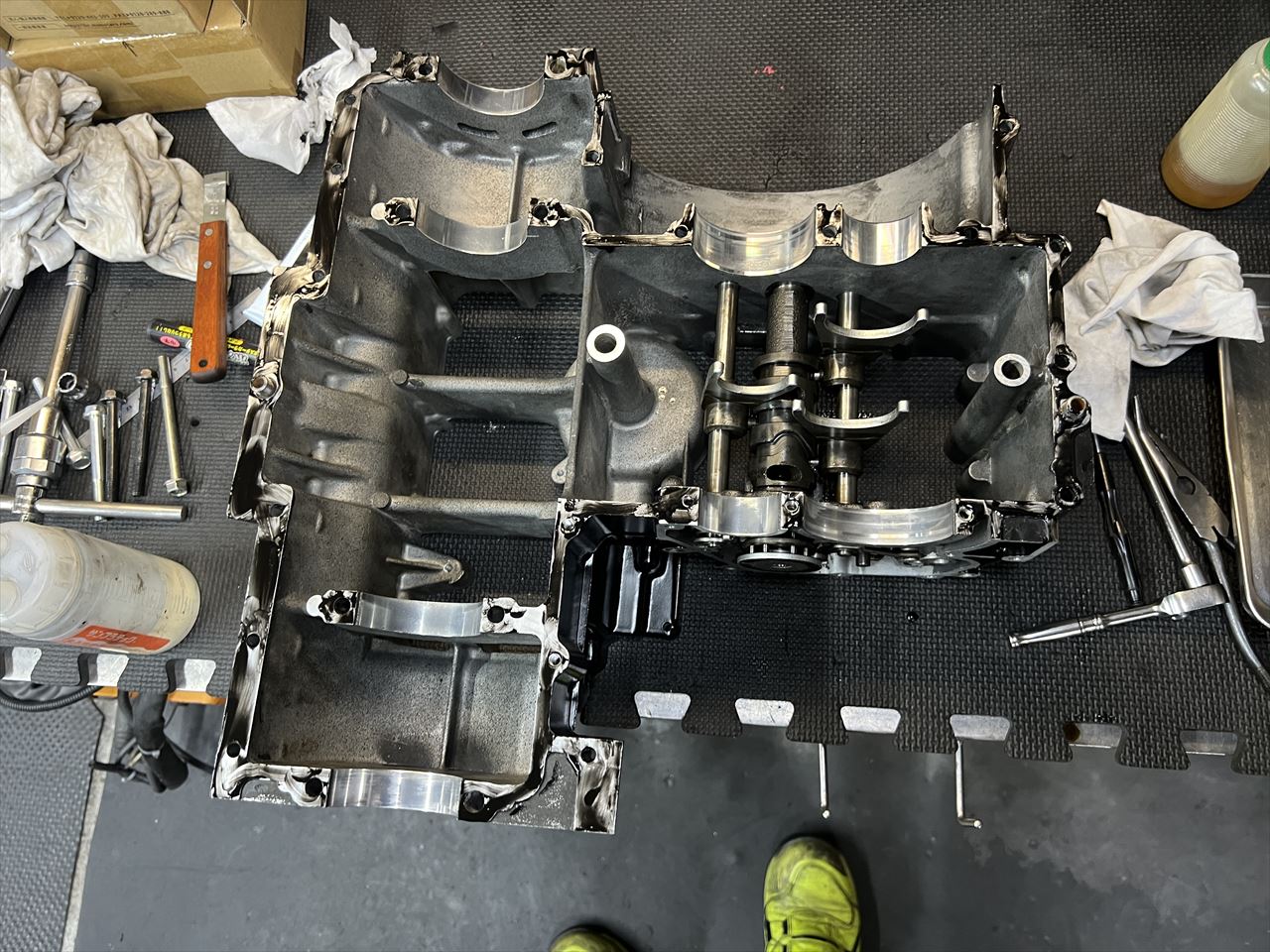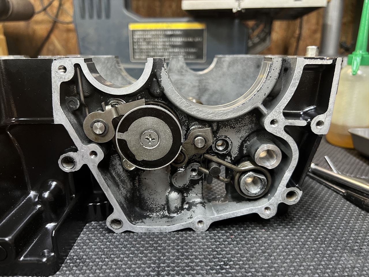 エンジン組み立ての続きです。ローケースにシフト機構を組み込みます。