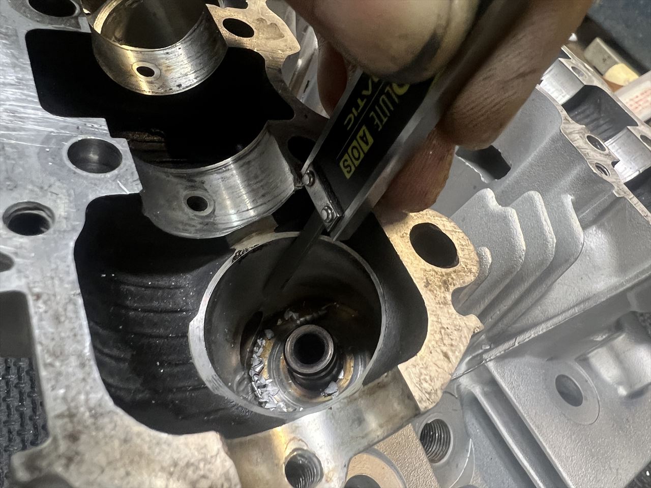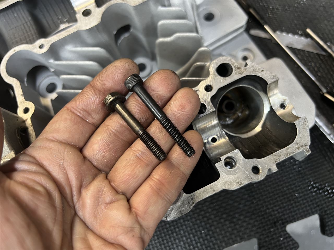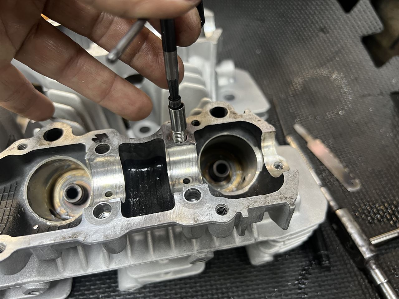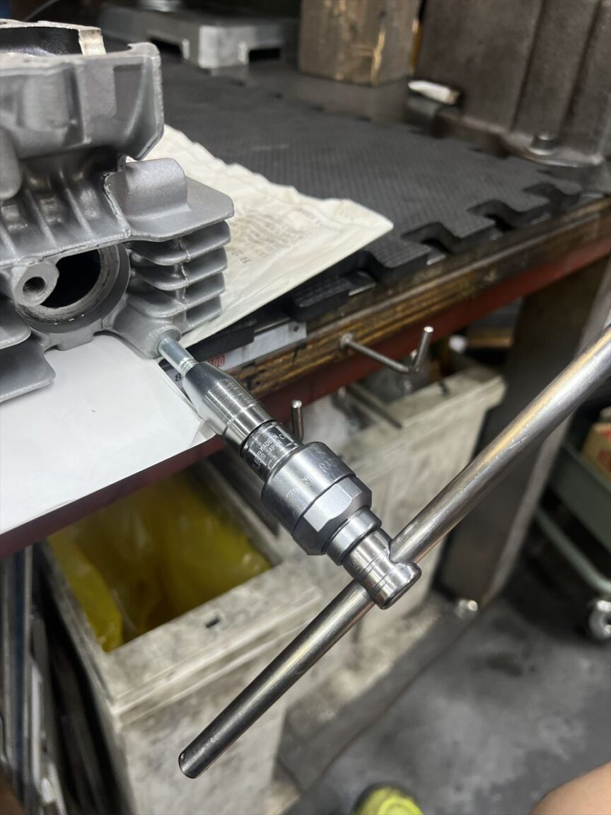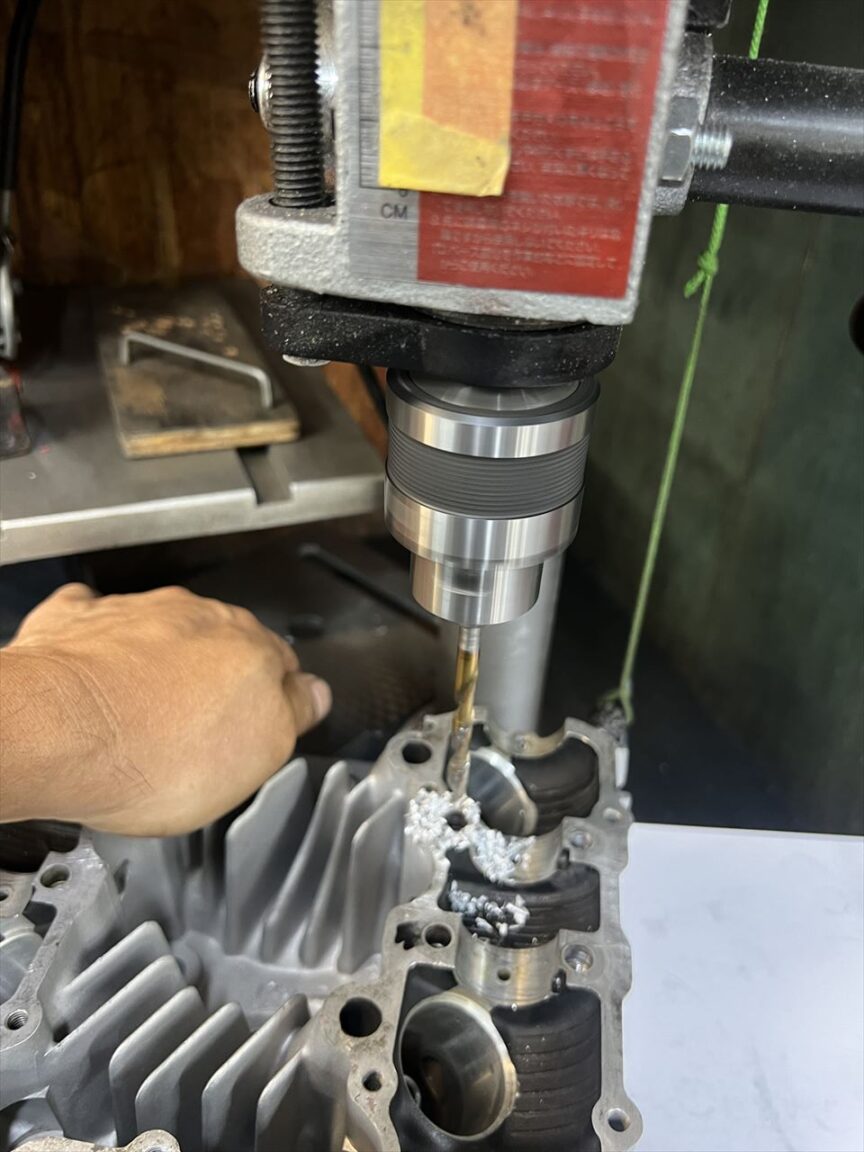ネジ穴の深さは奥のオイル通路に貫通しない程度にしておきます。