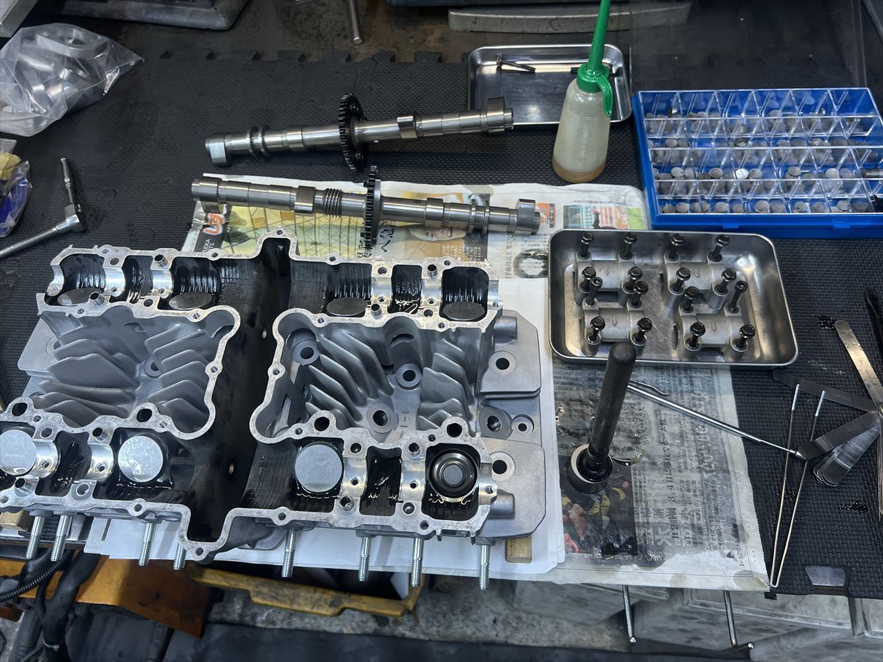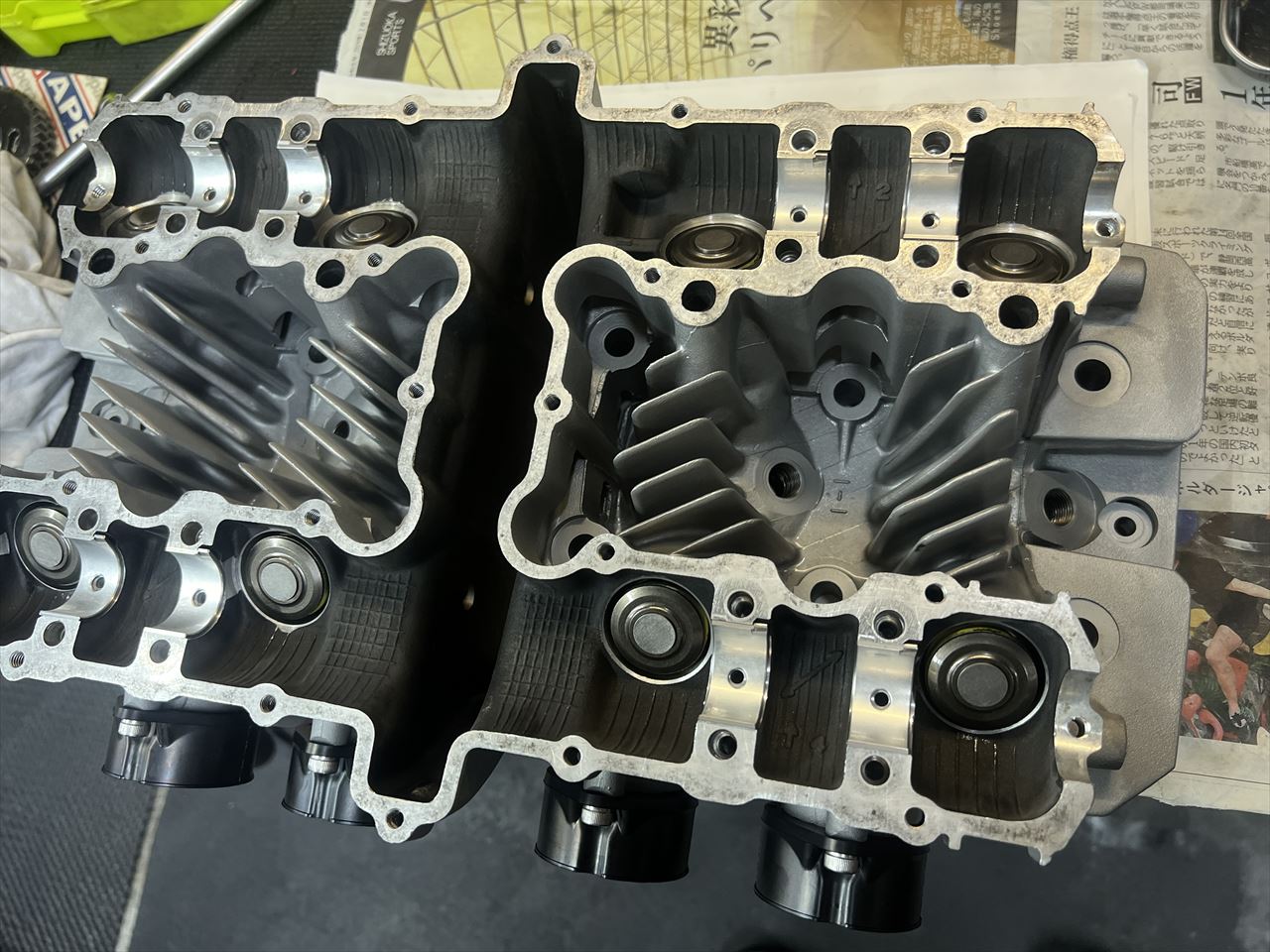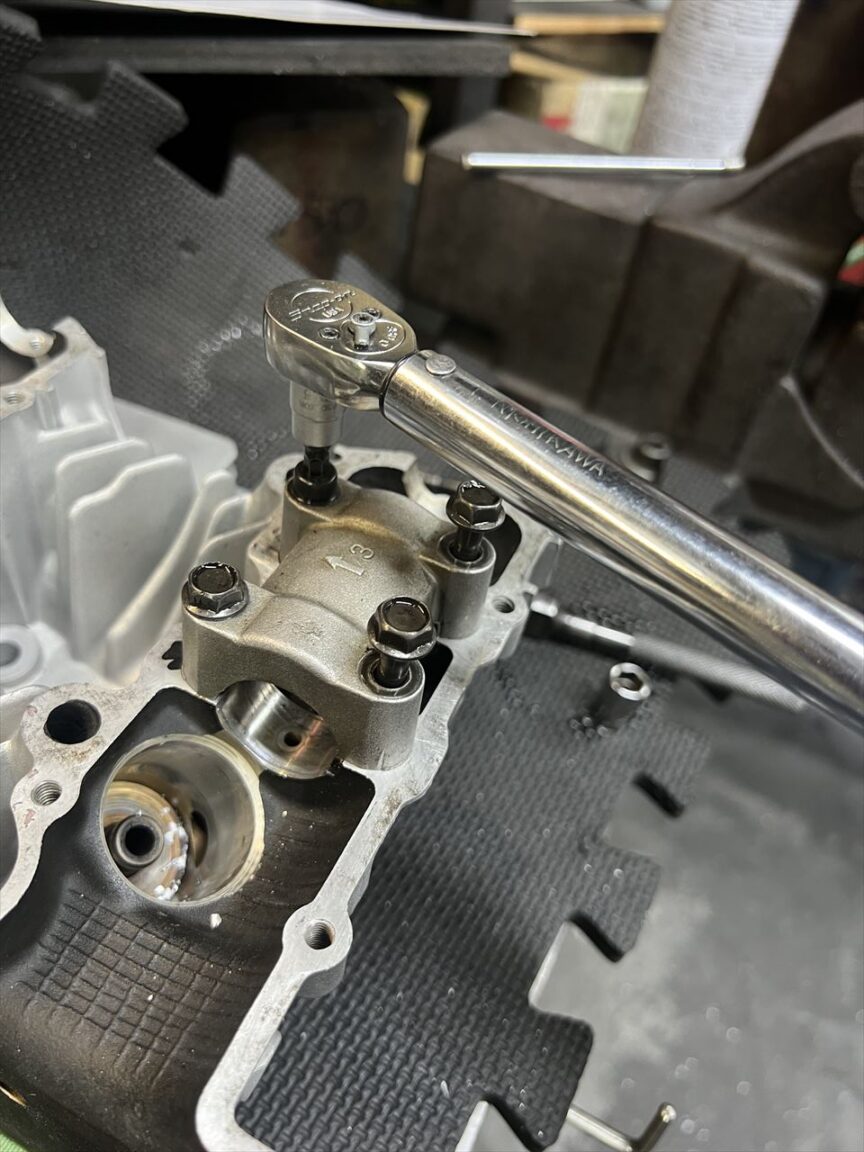 ヘッド単体の状態で先にバルブクリアランスを調整します。