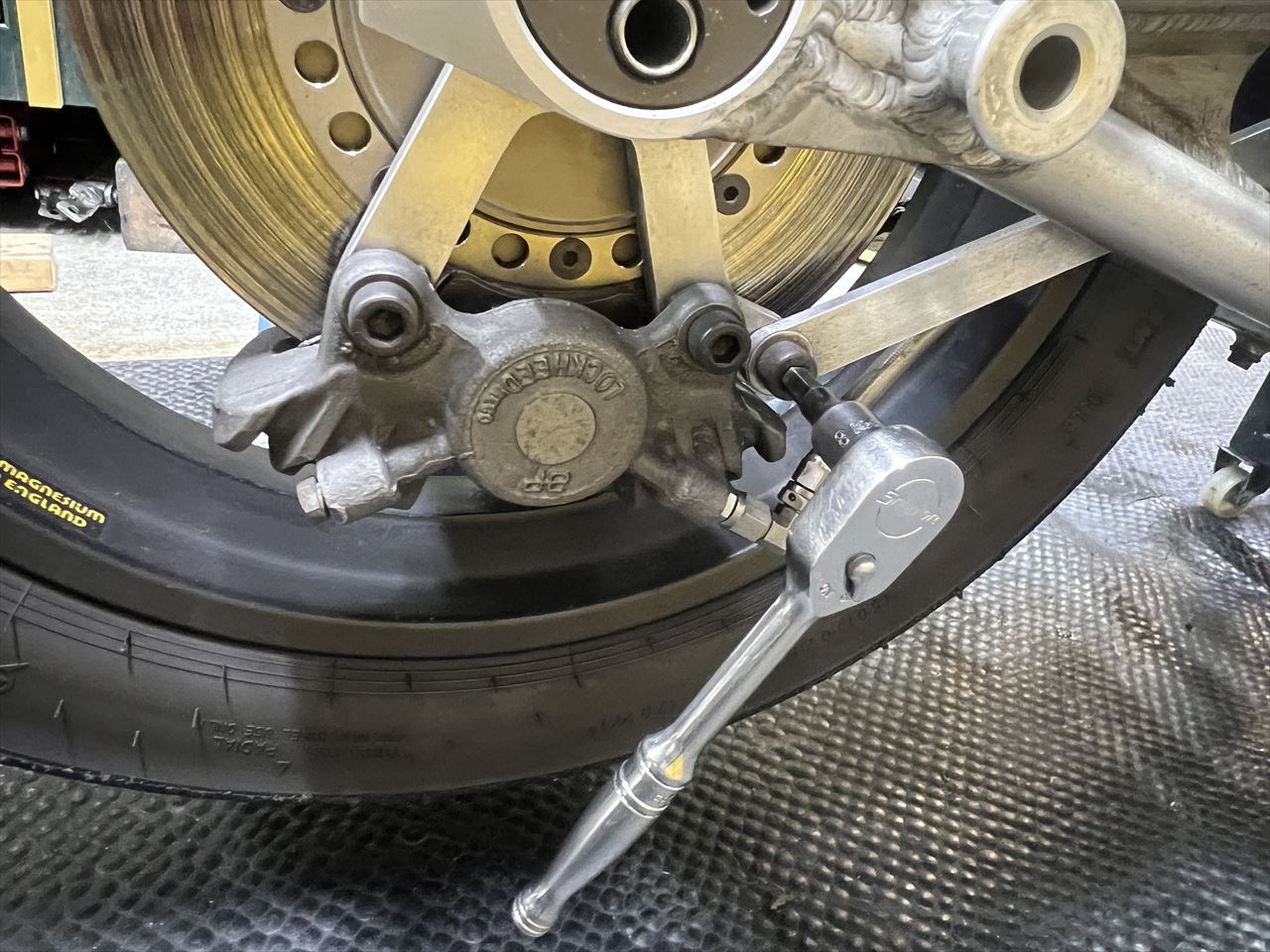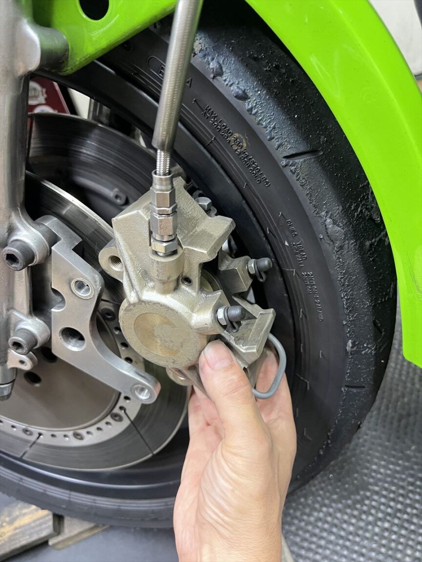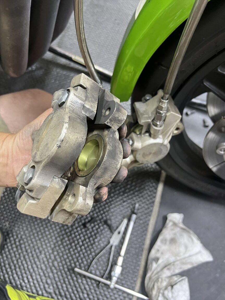 ホイール形状にもよりますが、S1キャリパーの脱着は多くの場合パッド無しの状態で行います。