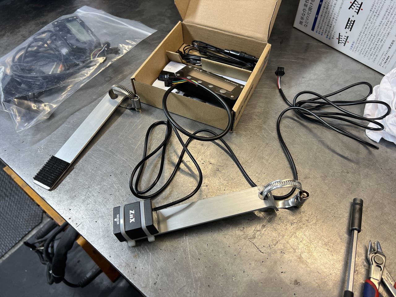 続いてラップタイマーを取り付けます。磁気センサーは路面に近づけるため、フレームから下にステーで下げます。