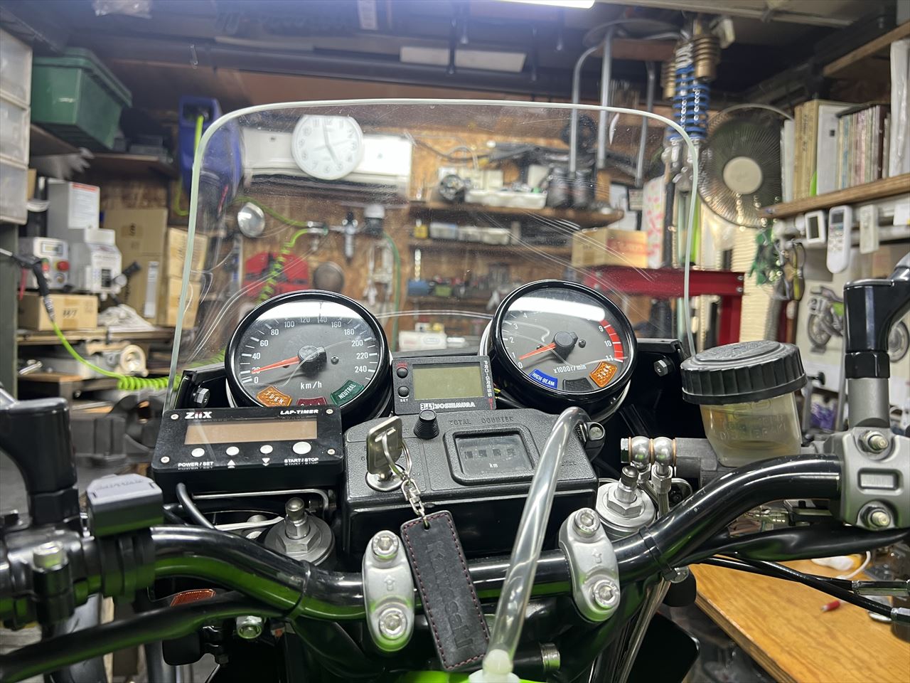 ラップタイマー本体は元の添付メータステーに取付。テンプメーターは丸メーター間に移設。