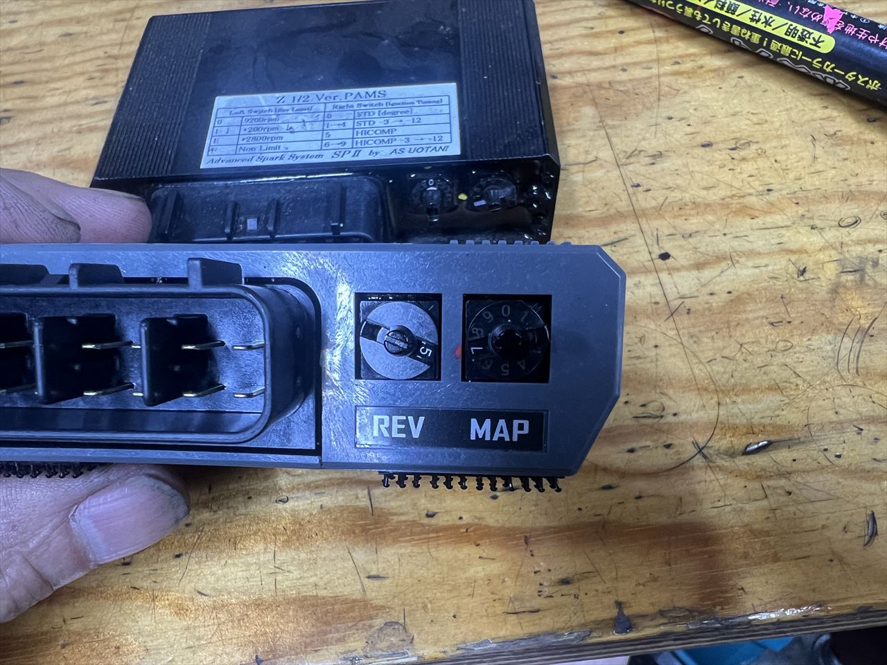 ダイヤルはレブリミットを今回から10200rpmにセット。だいぶ慣れてきたようなので必要に応じて10000rpmまで使ってください。点火マップは前と同じ7番にセット。