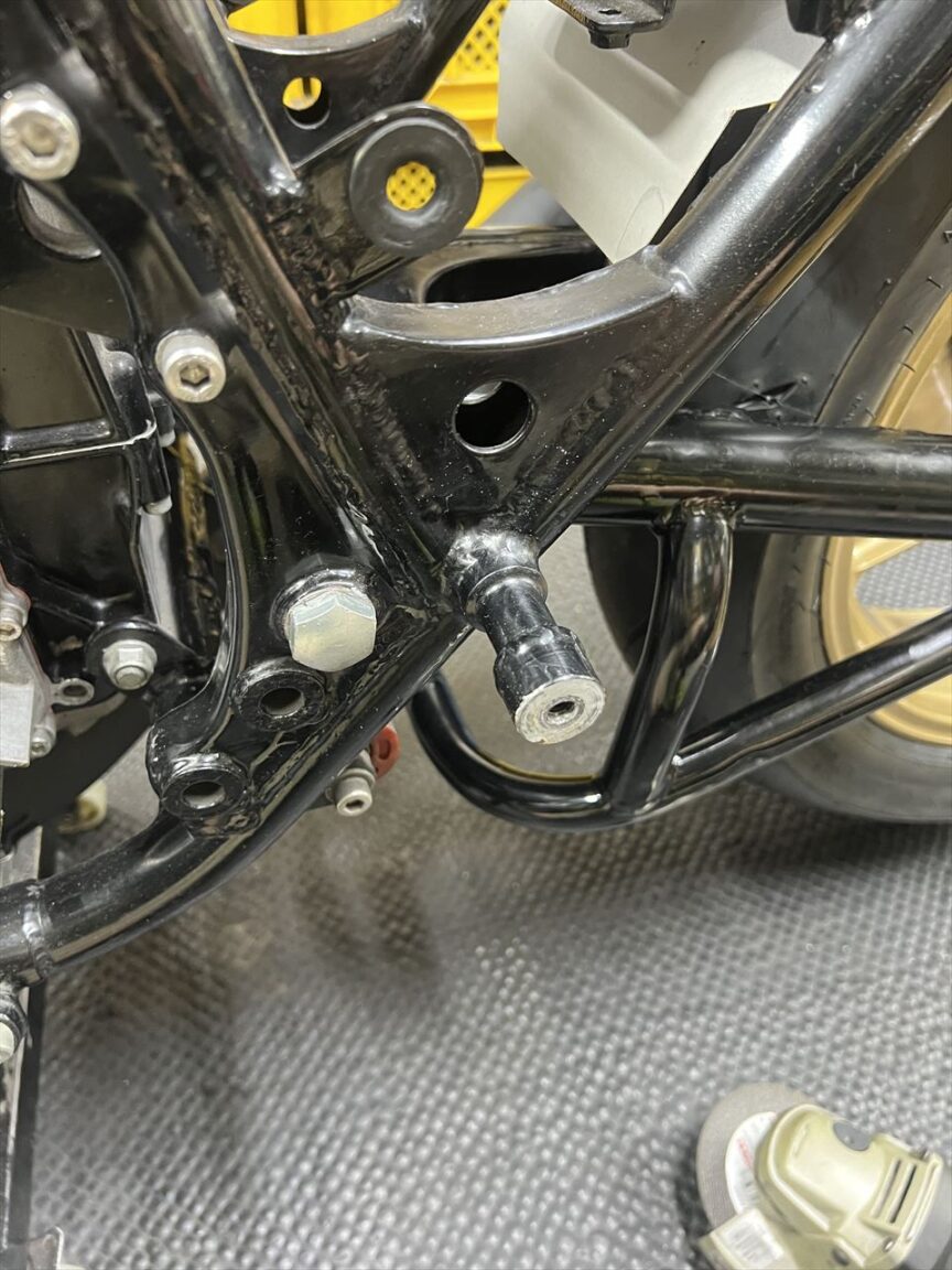 ステップもカスタムされており、マウントが溶接されています。これもワークスバックに変更するので一旦削除します。