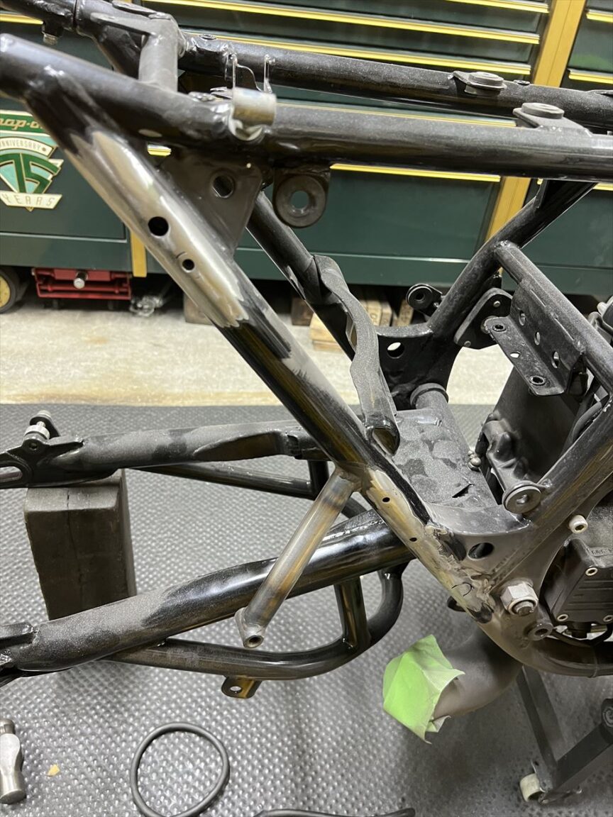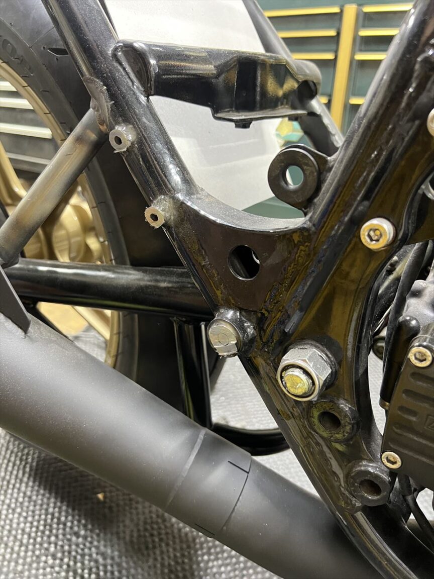 右側はこんな感じ。さらにリヤマスターマウントもフレームに溶接されているので全て削除します。