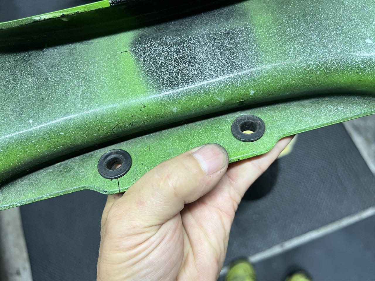 フロントカウルは純正ですが、割れた痕を裏からFRPで修理されていますが、既に表面はクラックが入っています。出来のいFRP製カウルへの交換をお勧めします。