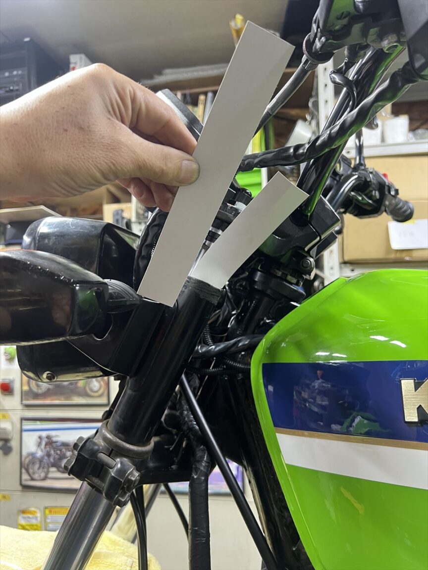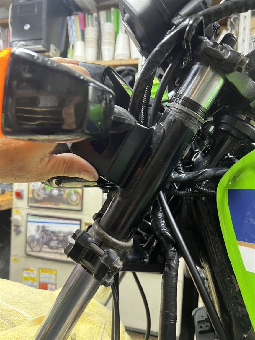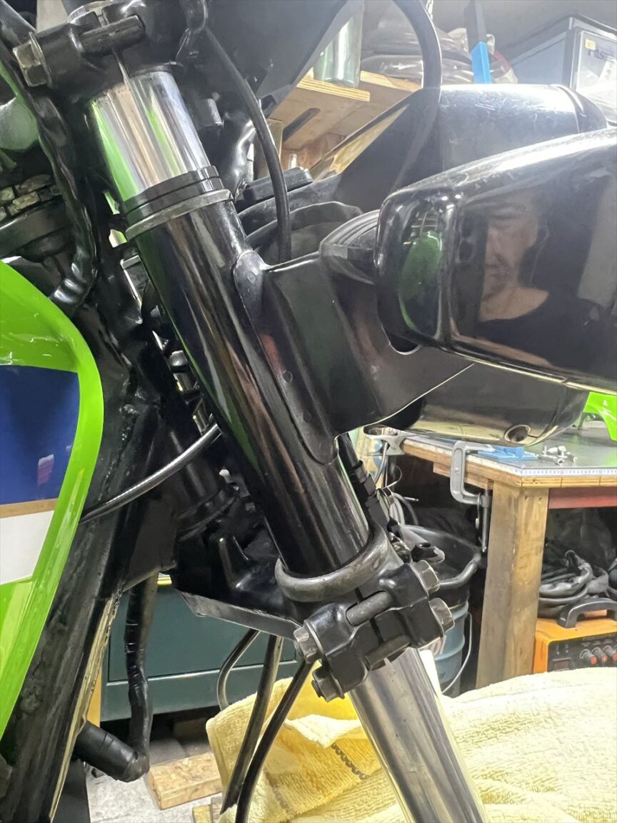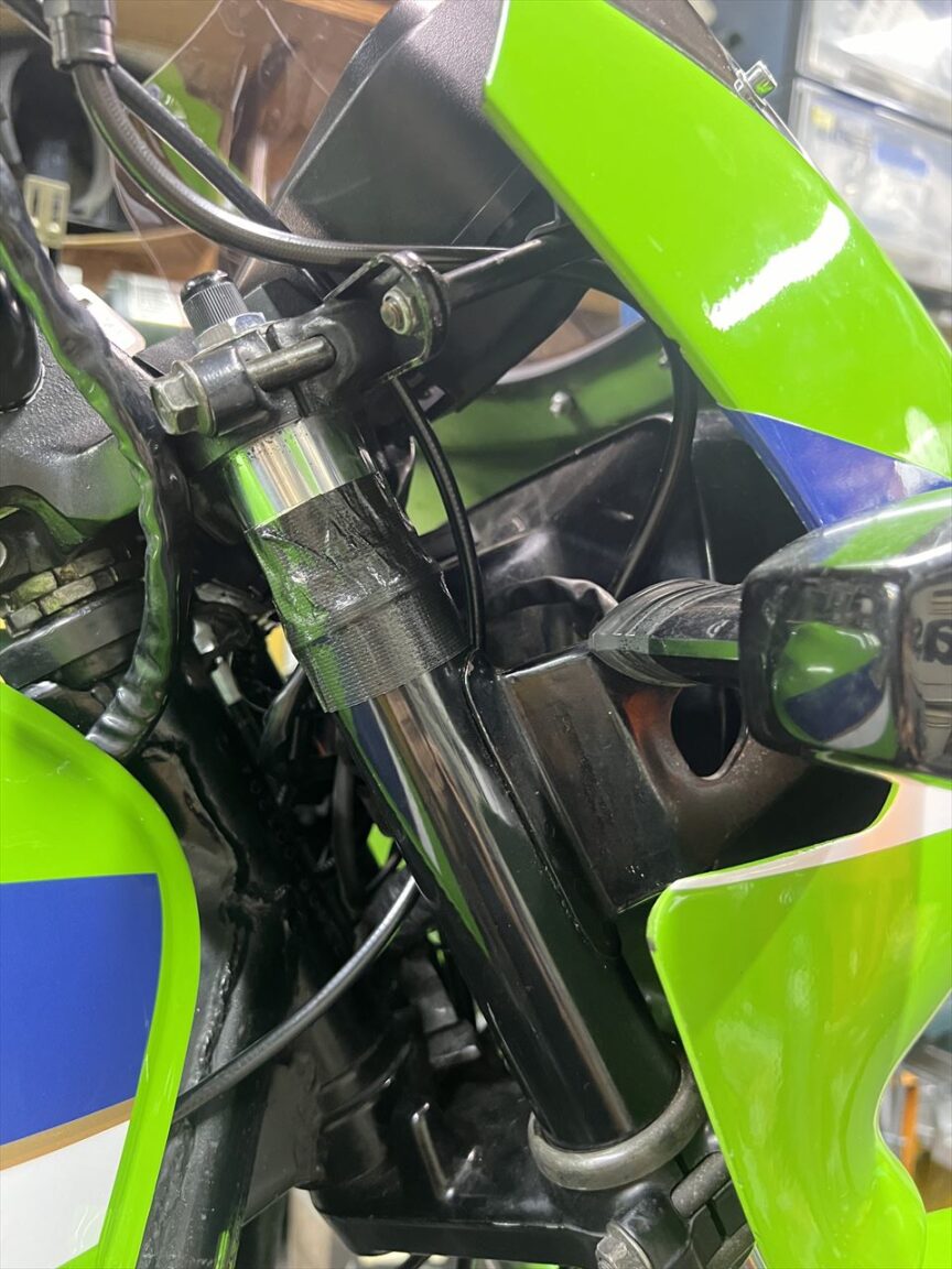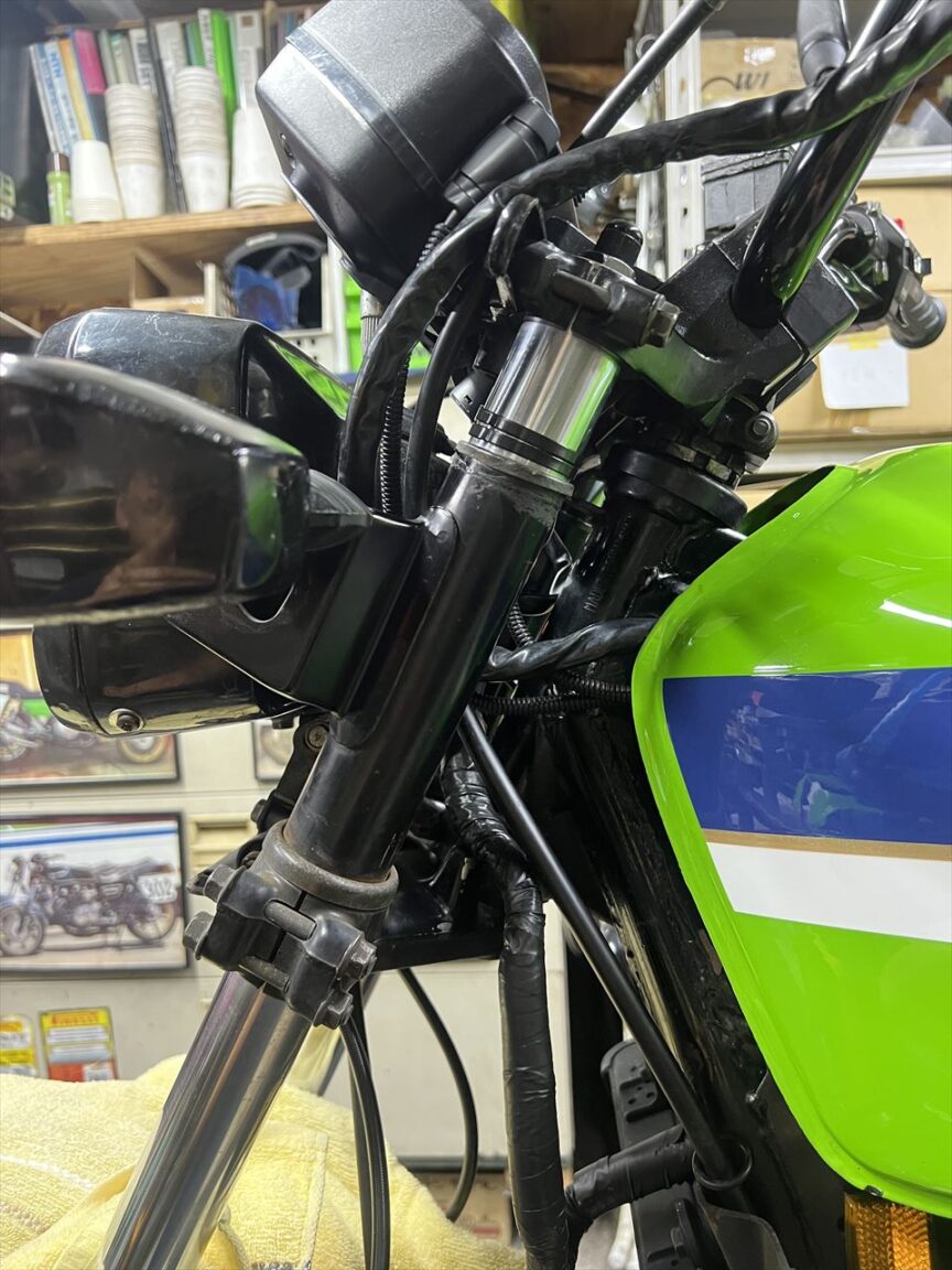 カウルのダンパーなどは純正ではなくまに合わせののもが付いています。この辺りは純正部品でまとめたいところ。アッパーステーやスクリーンの取り付けも同様です。