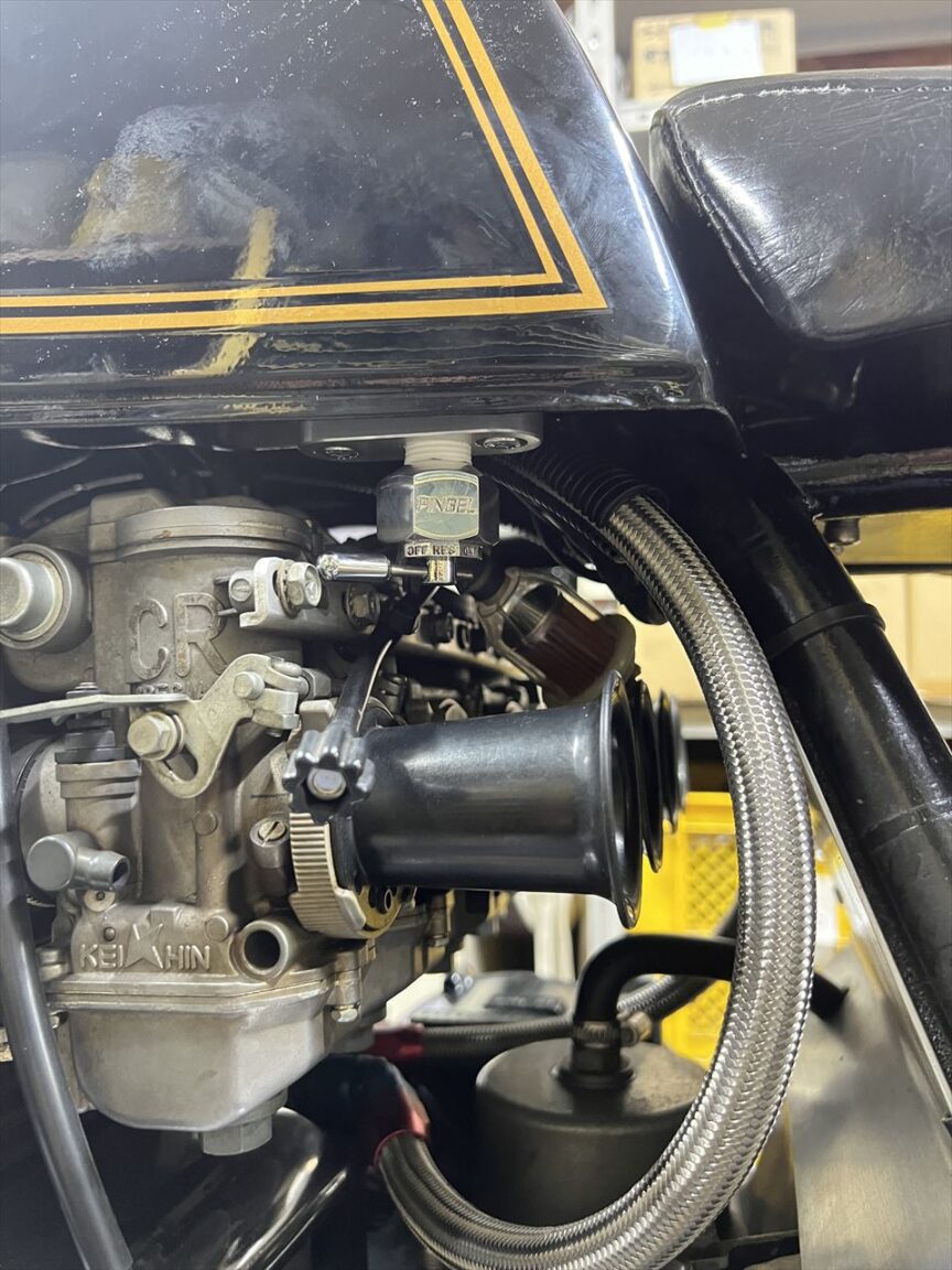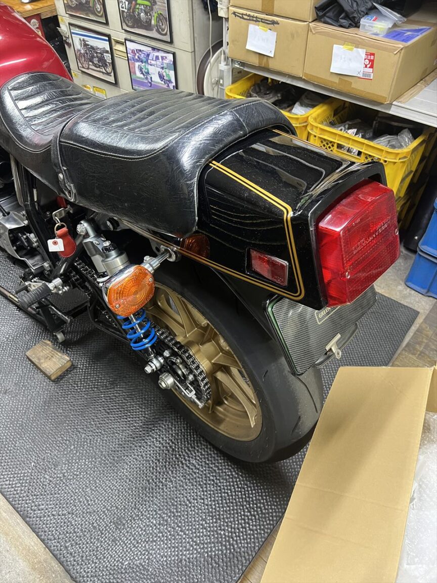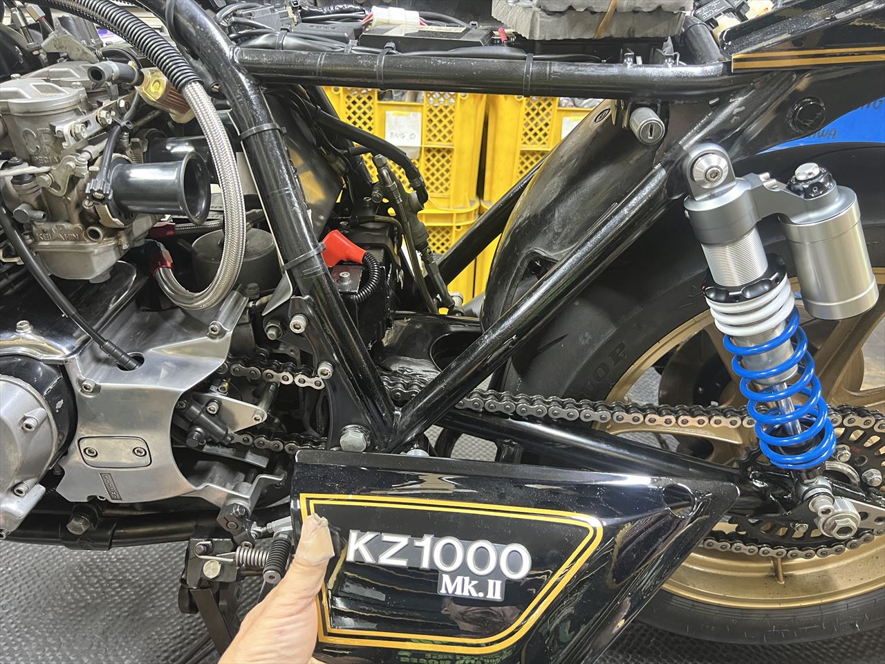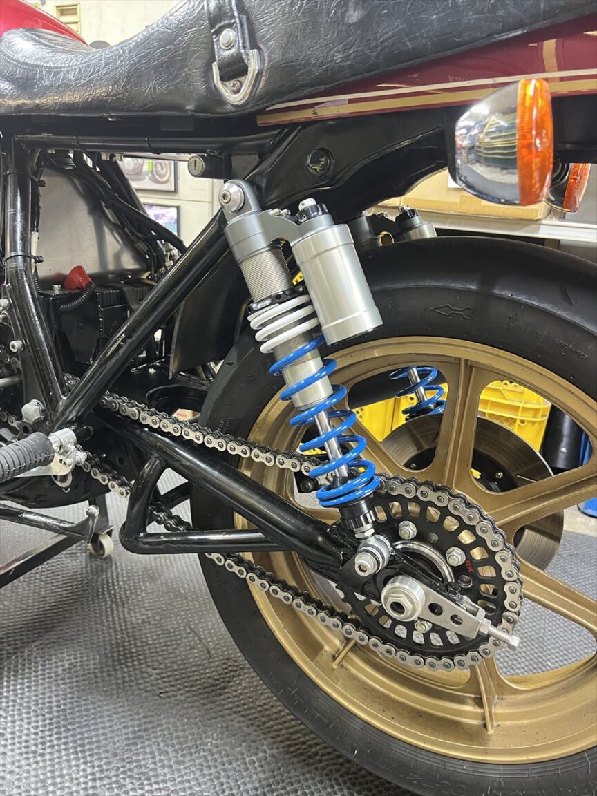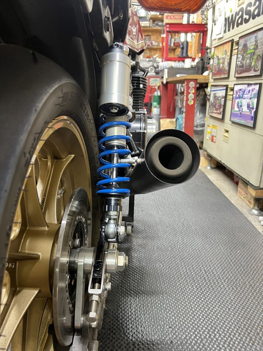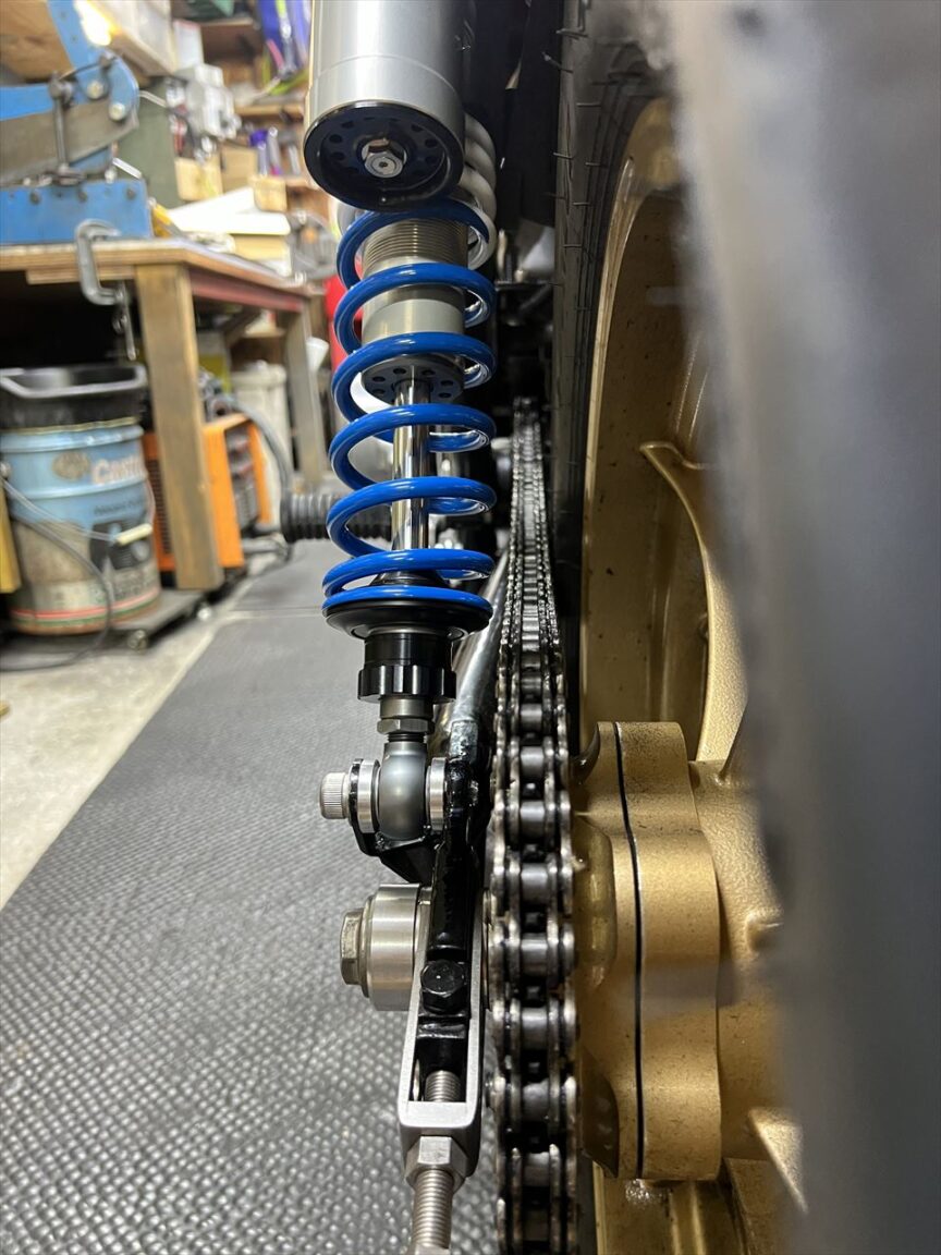 ショックの自由長は少し長くなり、ジャッキアップだとリヤが高くなりますが、1人乗りに特化した仕様なのでプリロードは少な目にしてあり、1Gサグで1/3ストローク沈むセッティング。滑らかに良く動くリヤサスとなります。