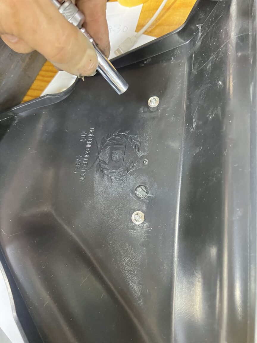 サイドカバーのエンブレムは、純正新品が無いのでPMC製を使います。
