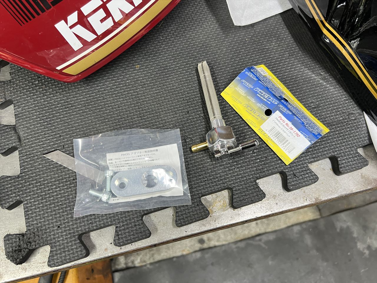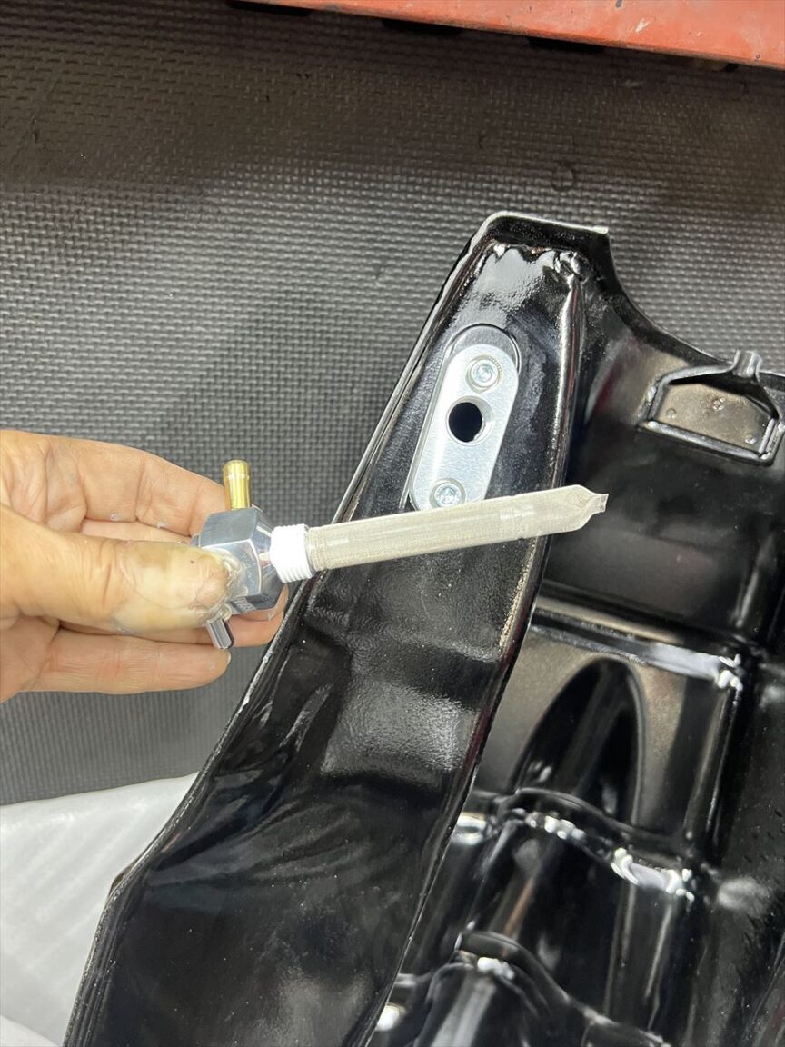 大型車用にガソリン流量を確保するため、3/8NPTネジのタイプを使います。そのままでは付かないので、コックの穴を拡大します。