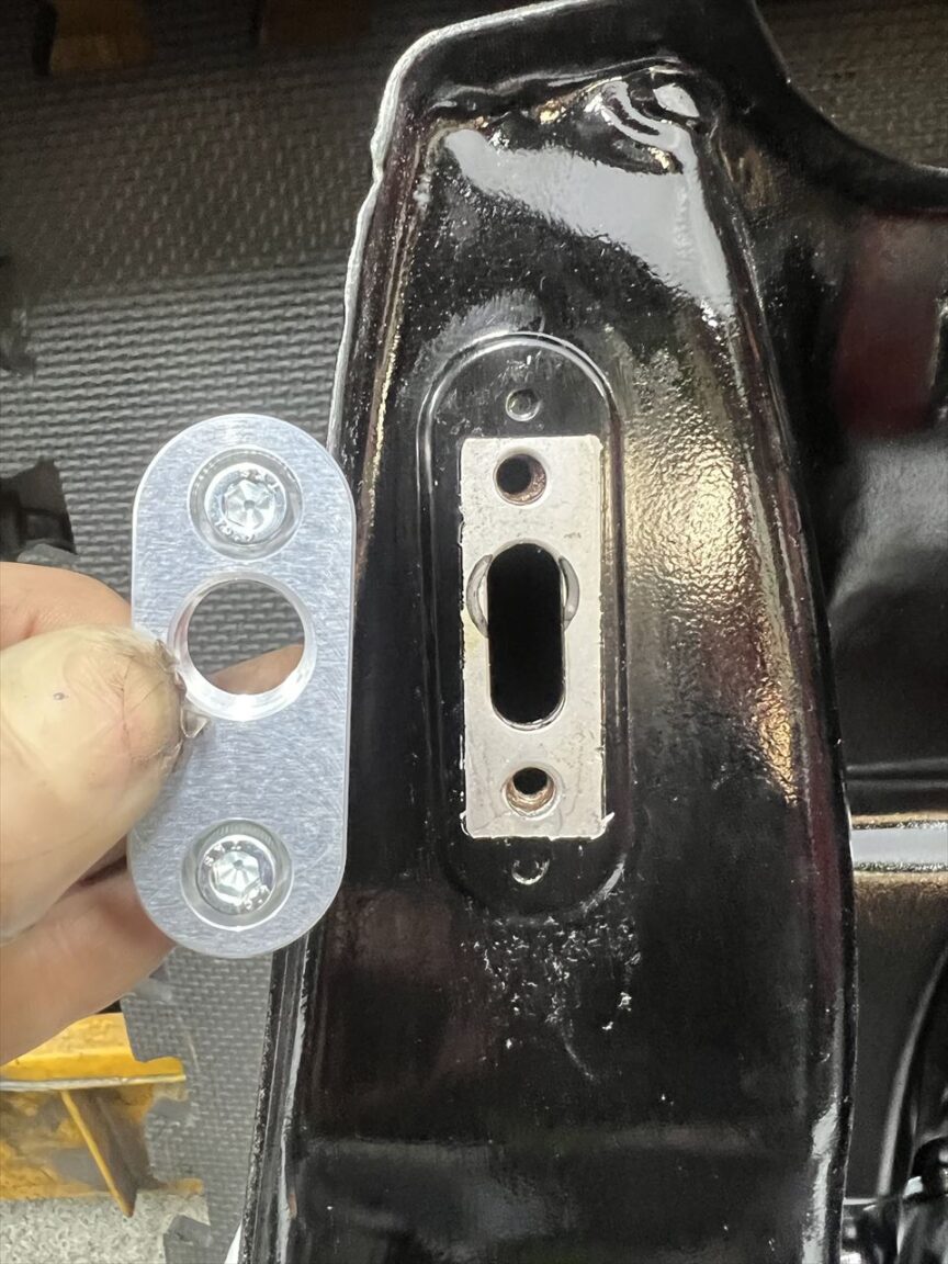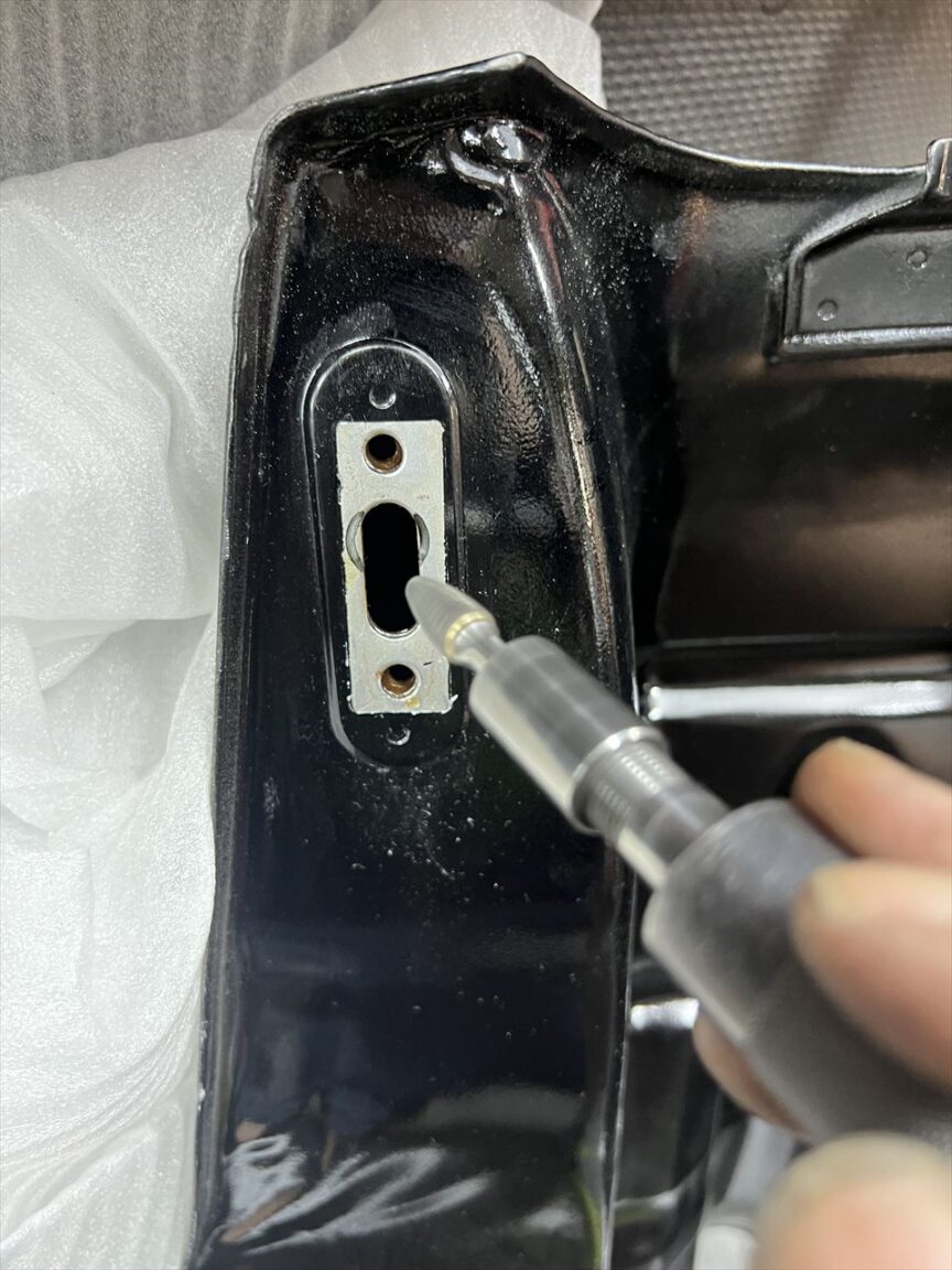 サイドカバーのステーは削除されているので、今回新たに溶接して取り付けます。