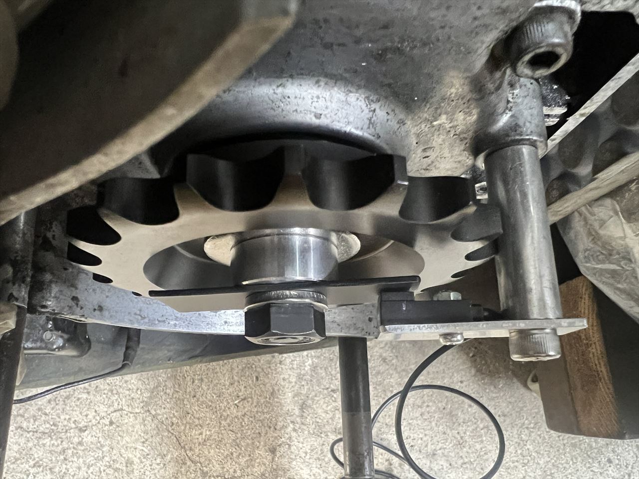 10ミリオフセットスプロケを使用しているとのこと、10ミリのスペーサーを足して回転子とスプロケにクリアランスを設けます。スプロケと回転子が近いとセンシングがうまくいかないので、少し多めにクリアランスを取っています。回転子とセンサーのギャップは約2ミリです。