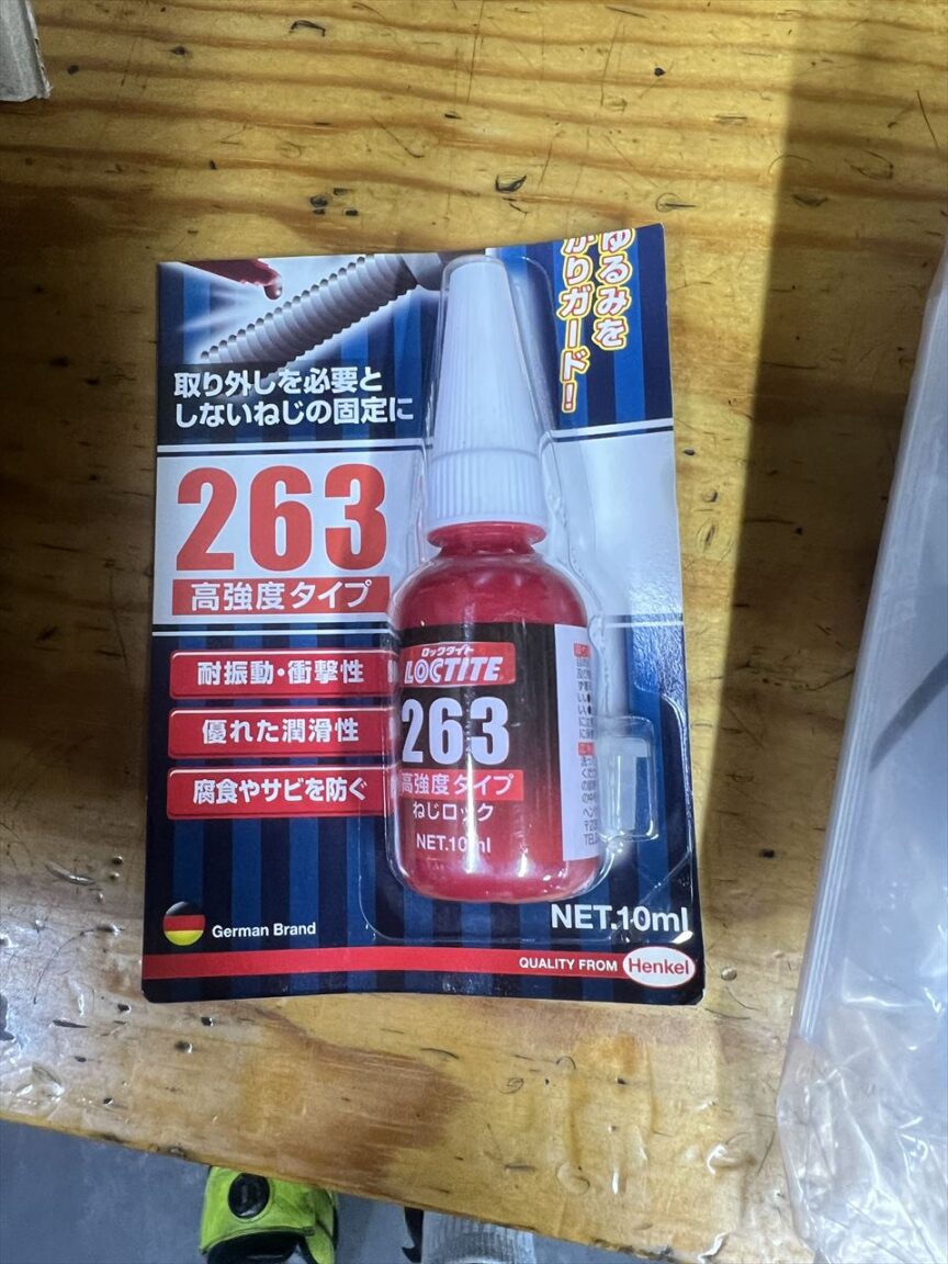 スプロケボルトの緩み止めは、このようなネジロック剤を必ず使用してください。