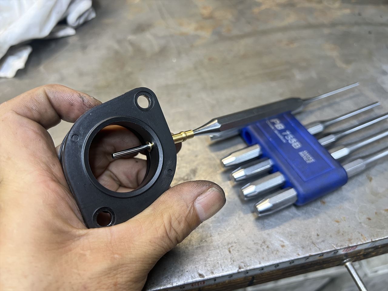 エアスクリューは1と1/2回転戻しになるよう予めスロージェットを選んでおきます。
