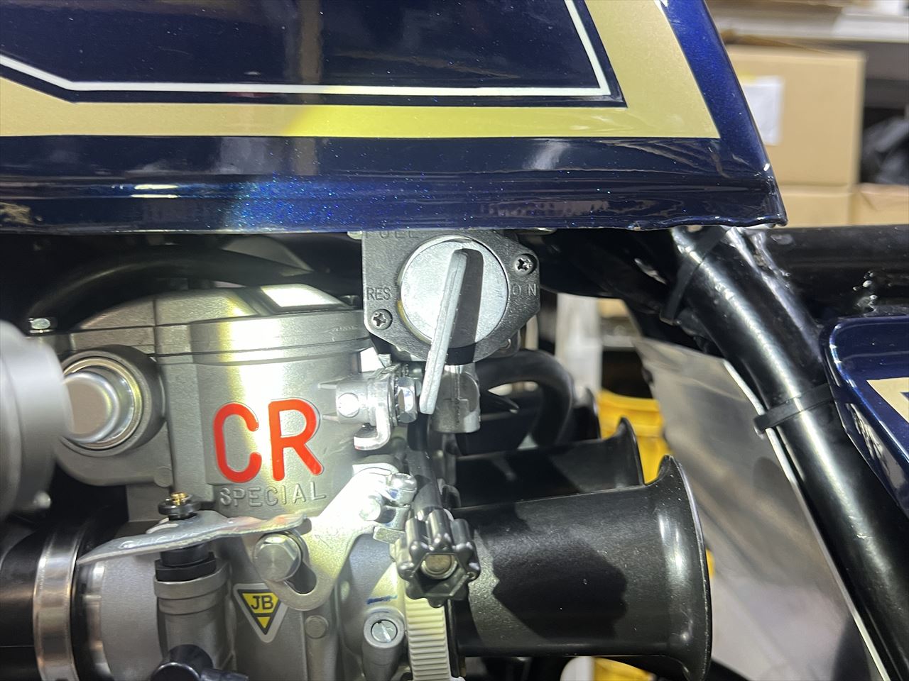 タンクを取り付けます。純正コックはギリギリ成立しますが、レバーはリザーブ方向へは回せません。