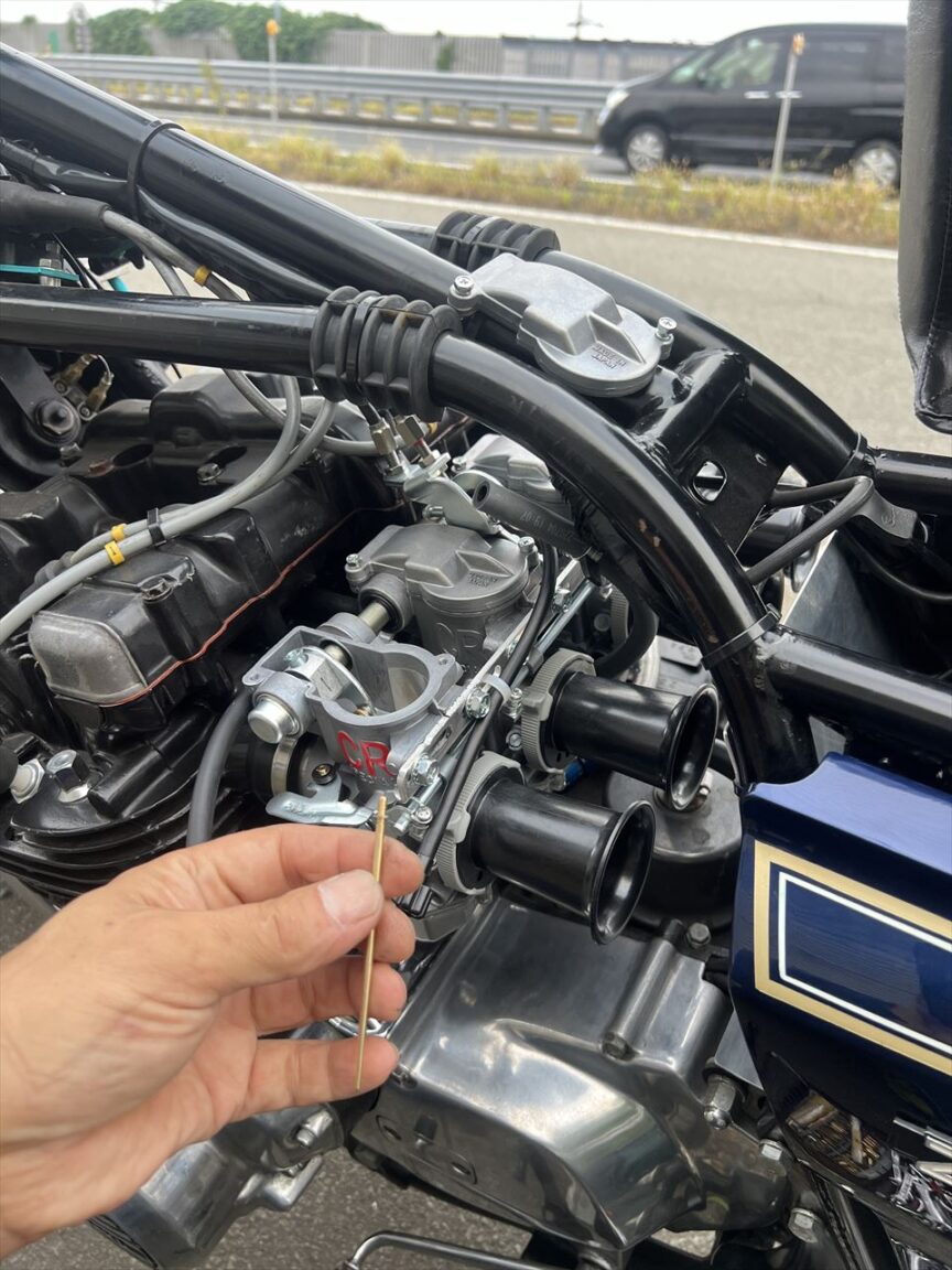 メインジェットはスロットル全開で評価します。濃いか薄いか微妙な時は、チョークを少し引いて悪化するかどうかで判断します。
