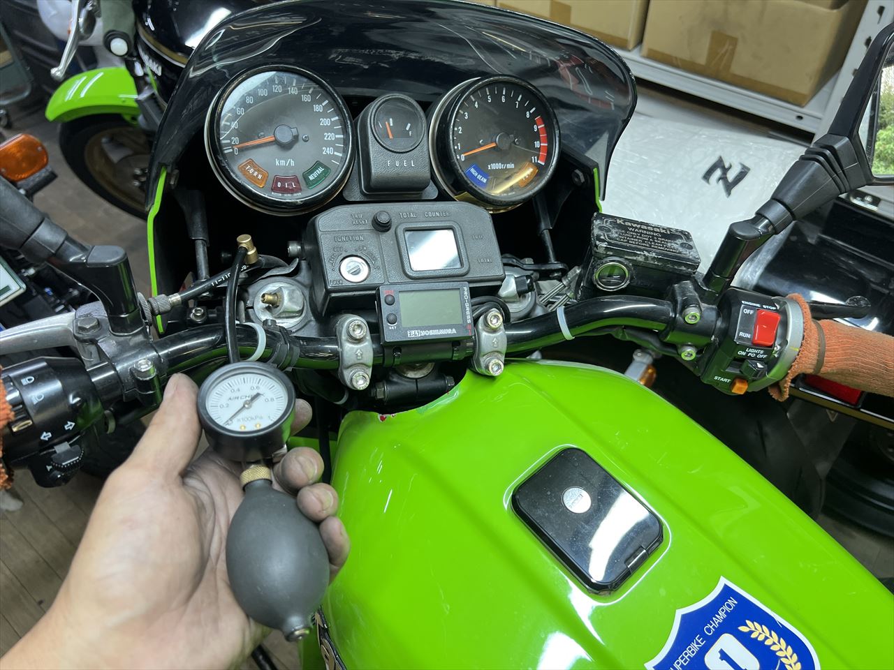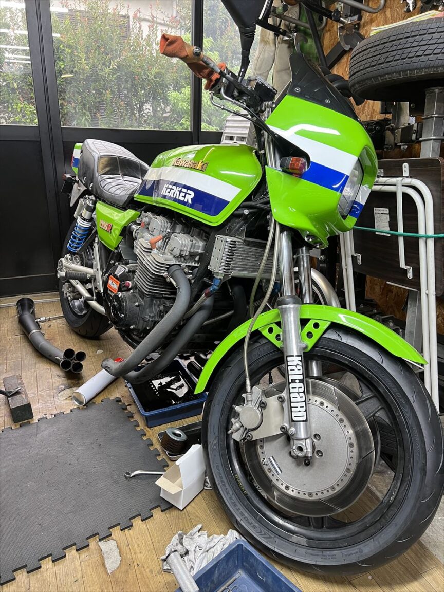 デモ車のZ1100B2ワークスS1仕様です。ロングツーリングを控えて久しぶりにメンテします。この車両、販売もするのでお探しの方はいかがでしょうか。