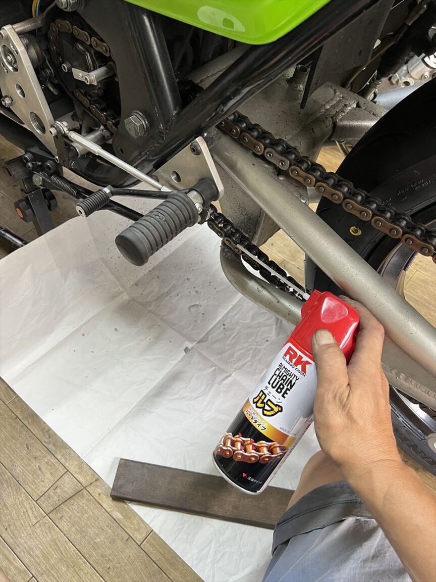チェーンはチェーンルブで潤滑します。