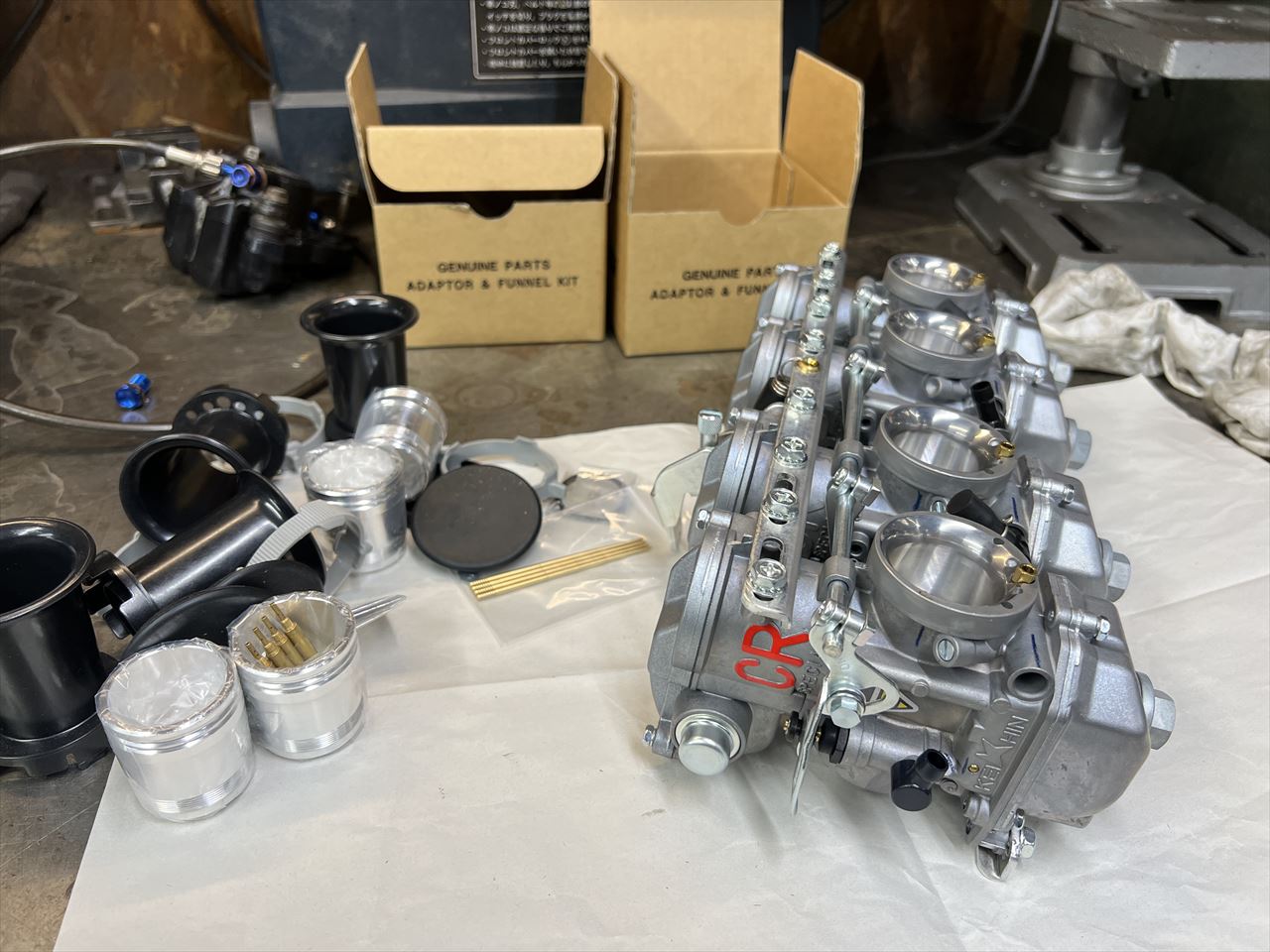 キャブは仕様変更します。新しく装着するのはバイパスポート加工済みのCR33です。