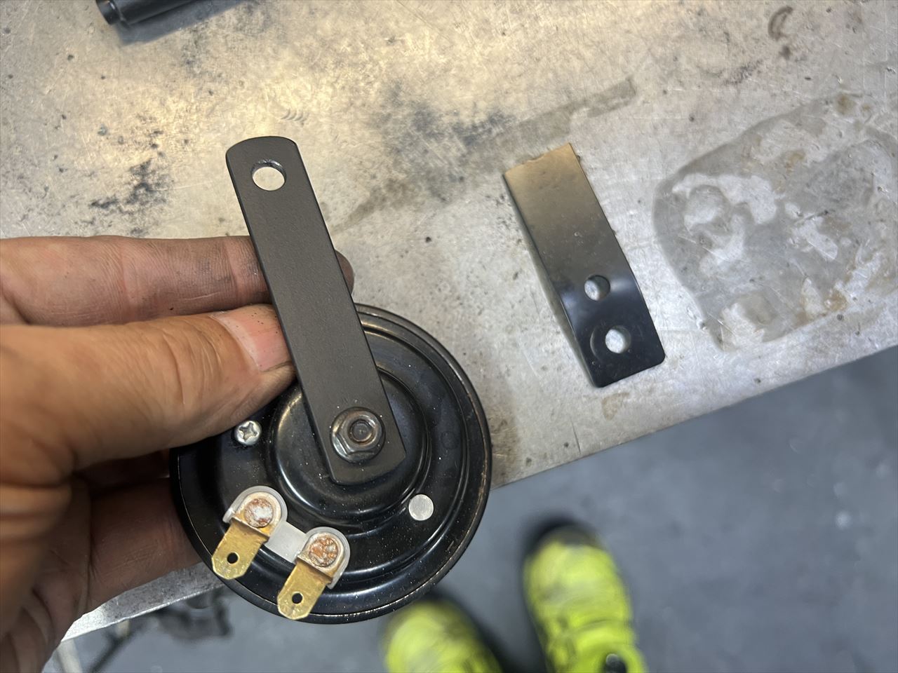 折れていたホーンステーは、厚い鉄の帯板で新しく製作しました。
