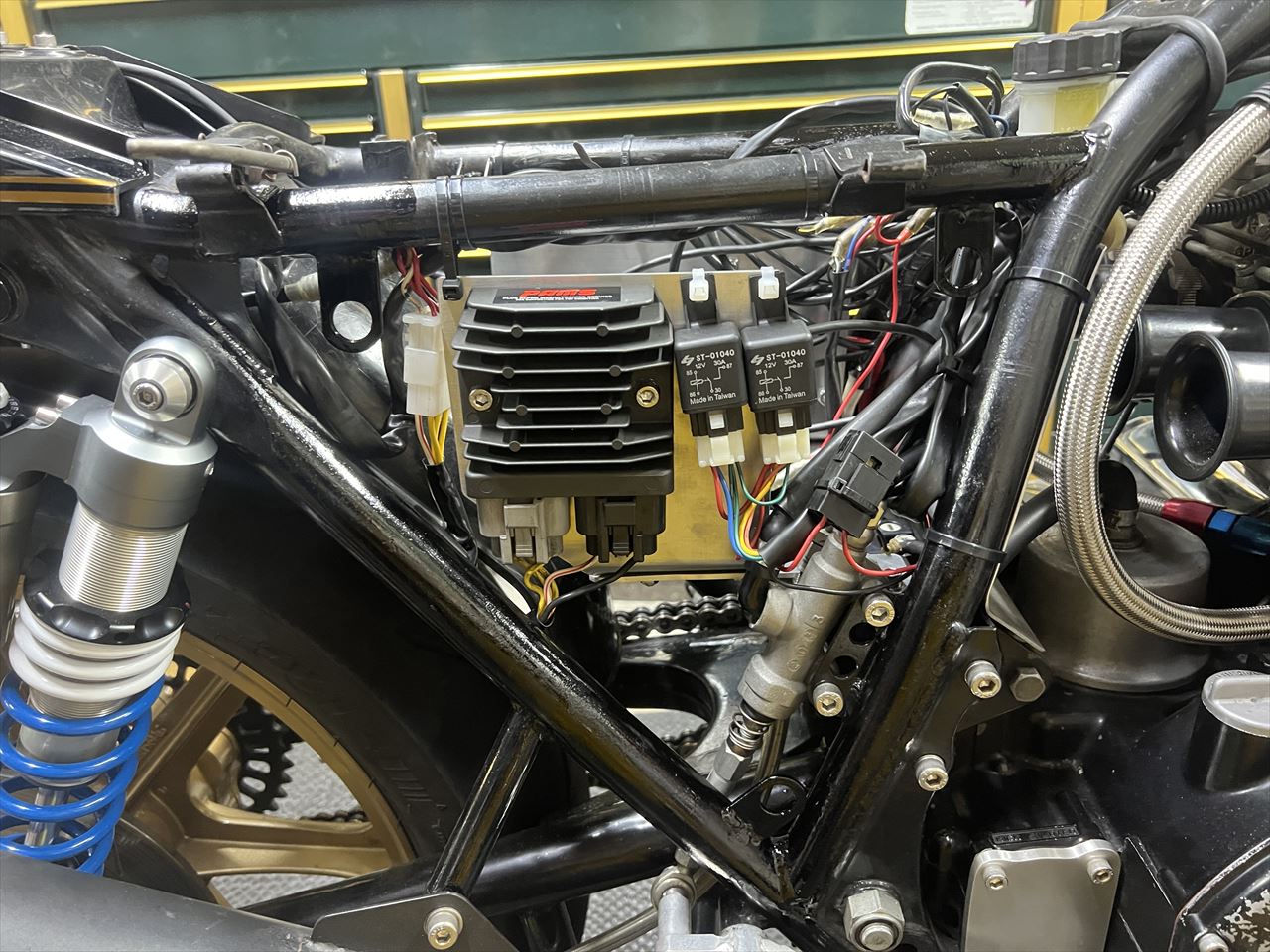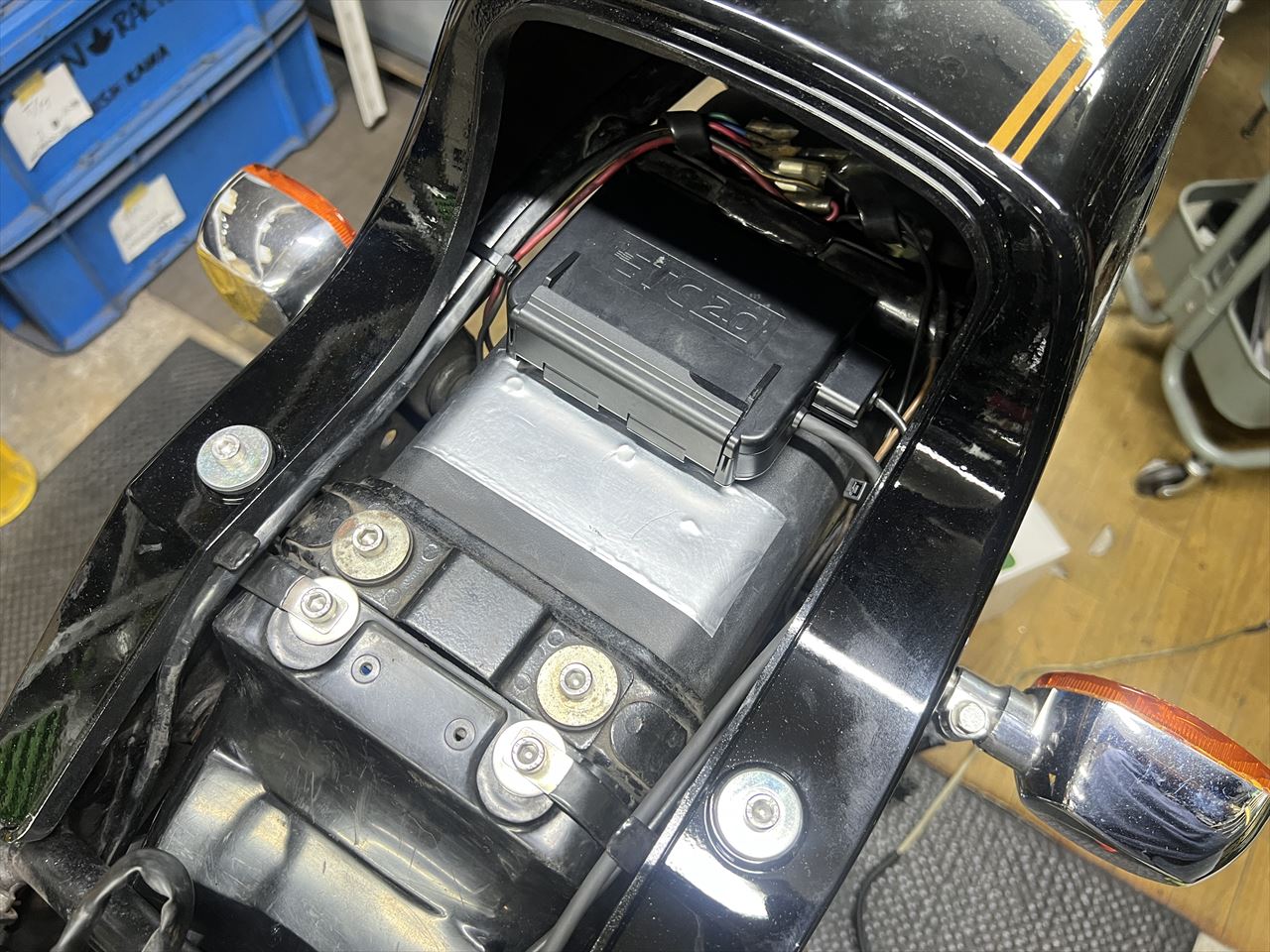 ETC車載器はアクセスが楽なテールカウル内に移設しました。