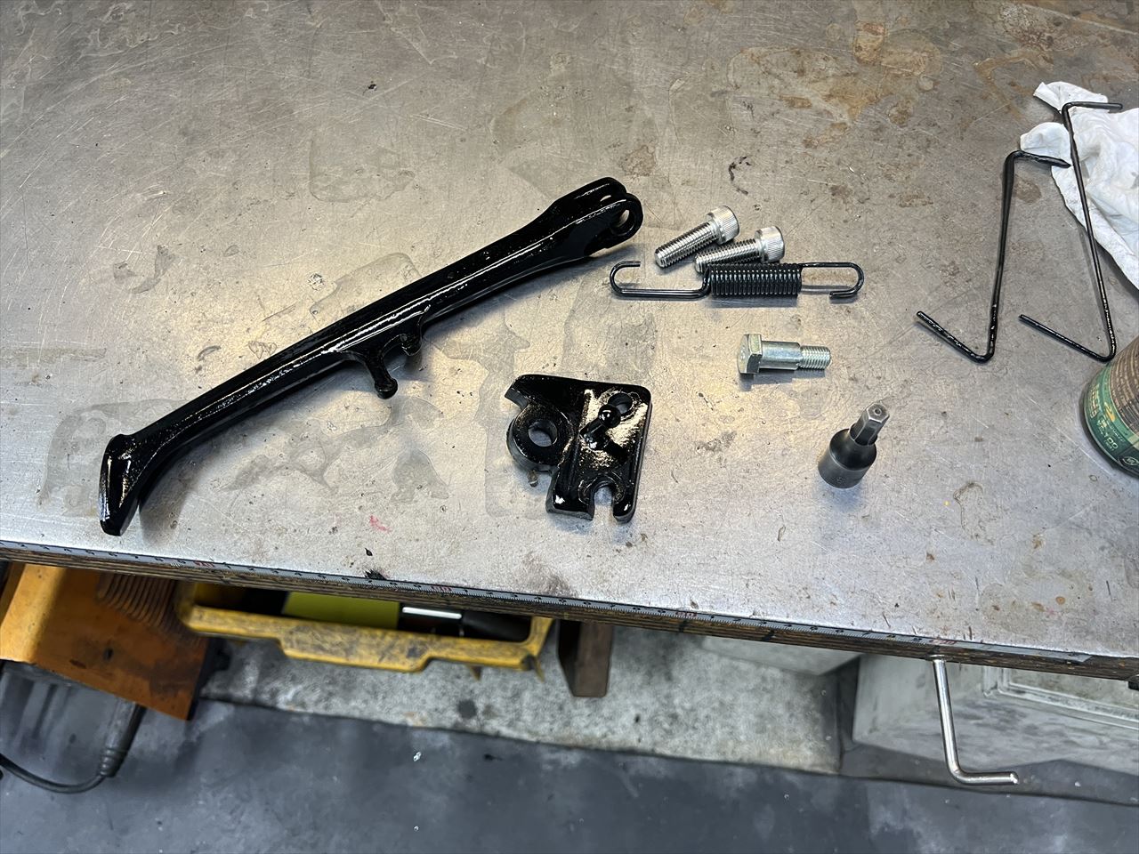 不要なステーを削除し、塗装します。スプリングとボルトなどは新品交換します。