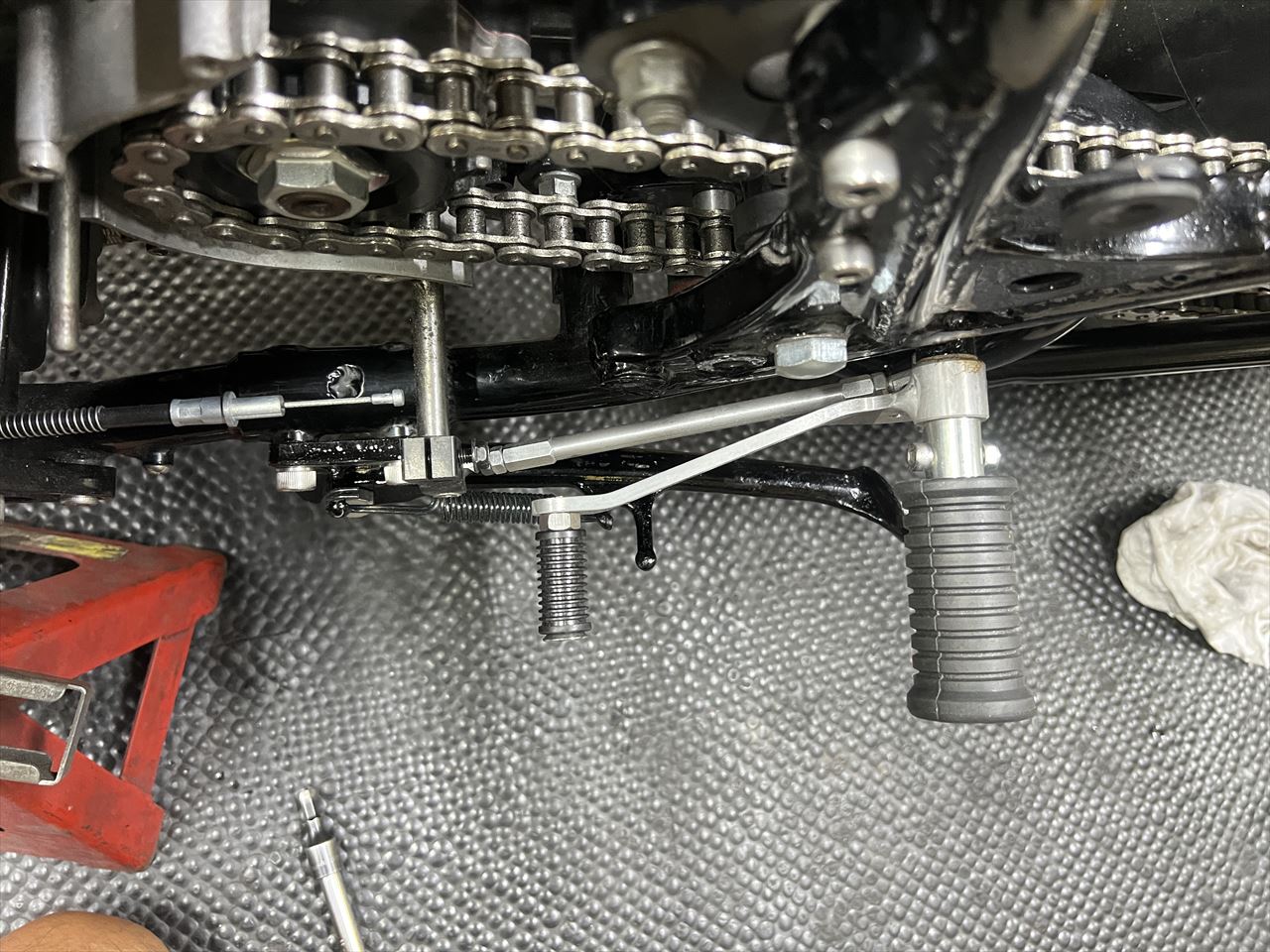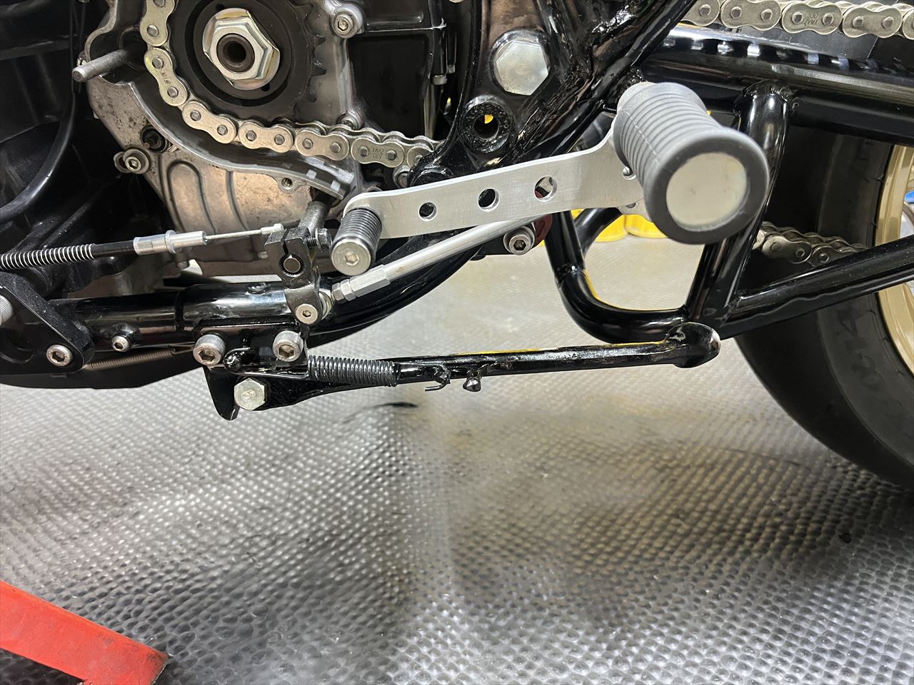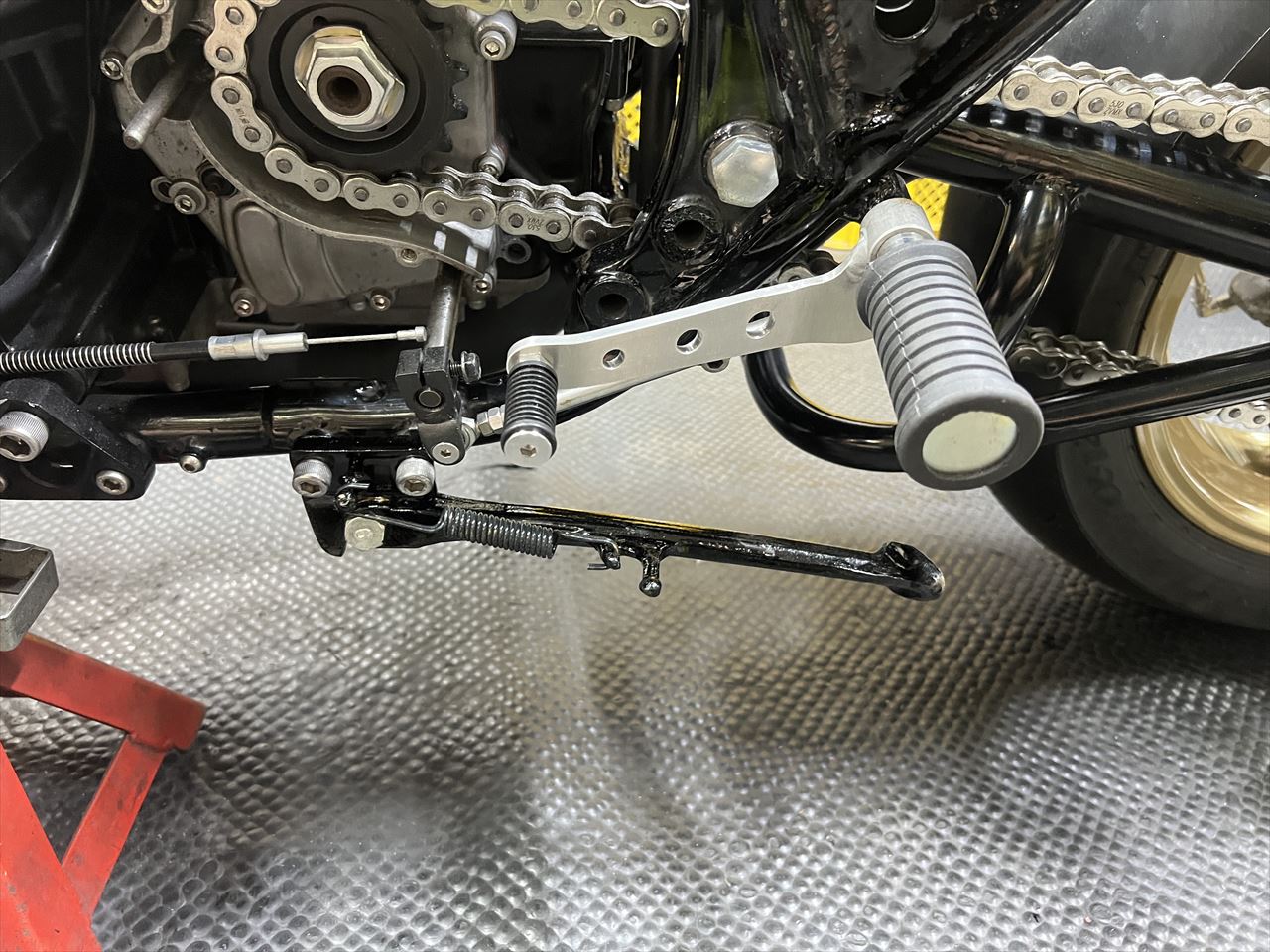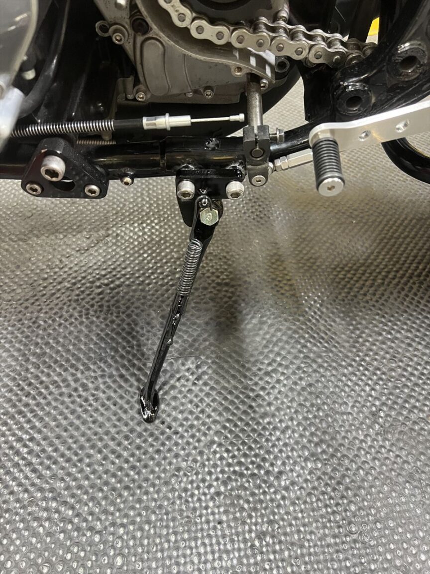 既存の脱着式サイドスタンドは、弊社でいつも使用しているタイプに変更します。素材はZXR250純正です。