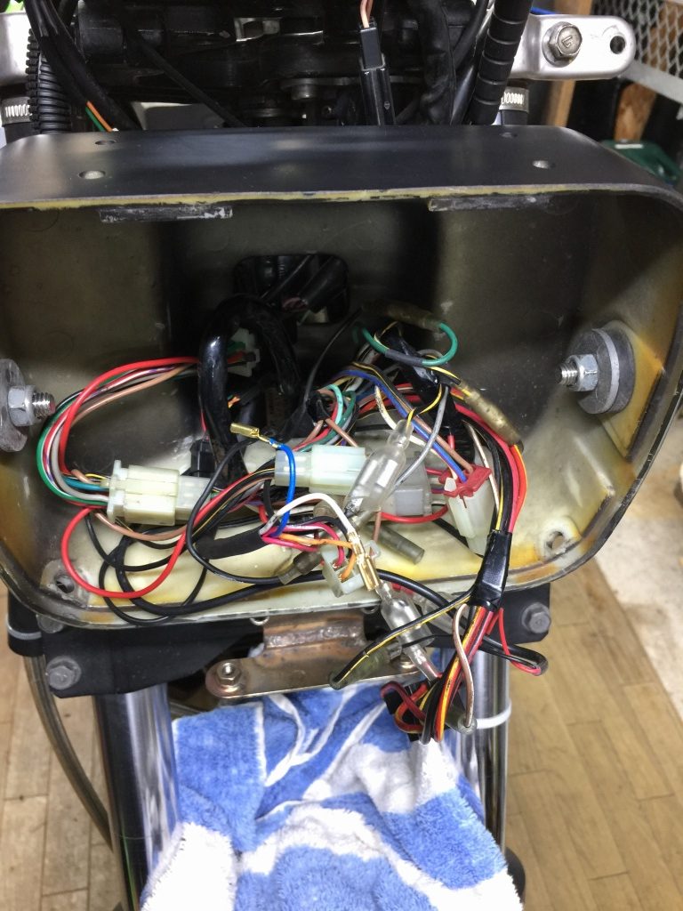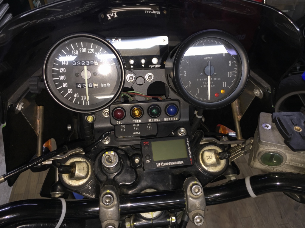 タンク下に設置していたタコメーター用のスイッチは、ご希望のメーターパネルへ移設しました。