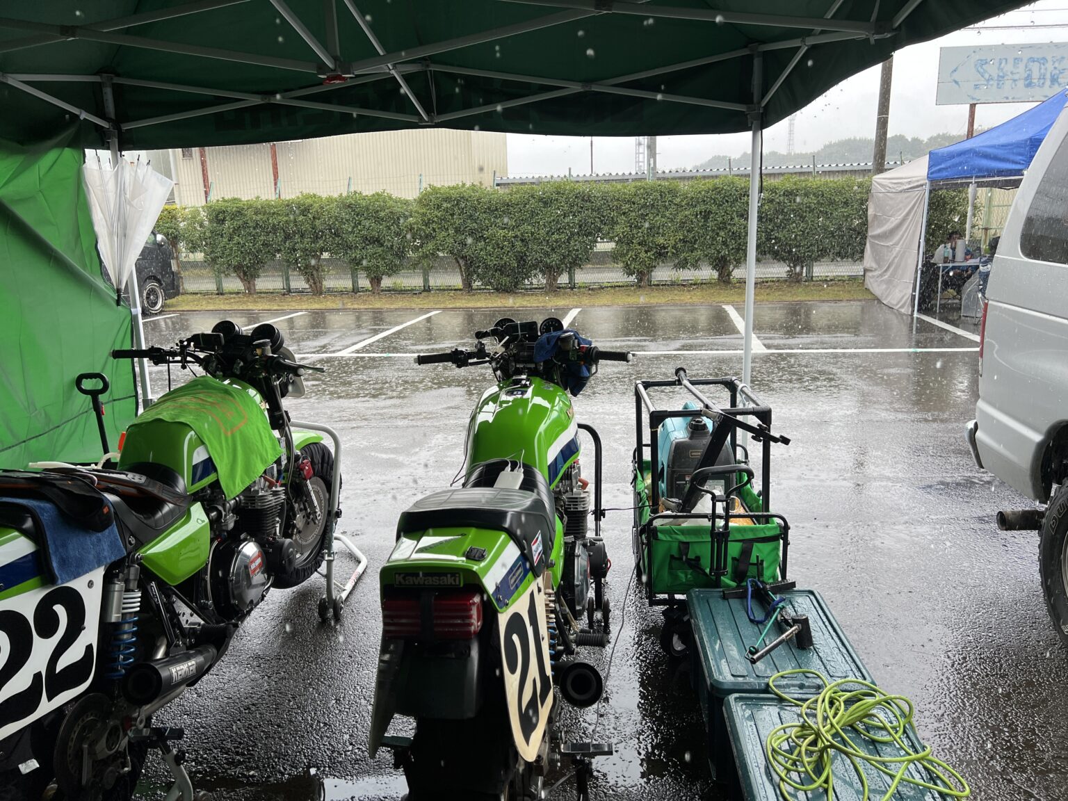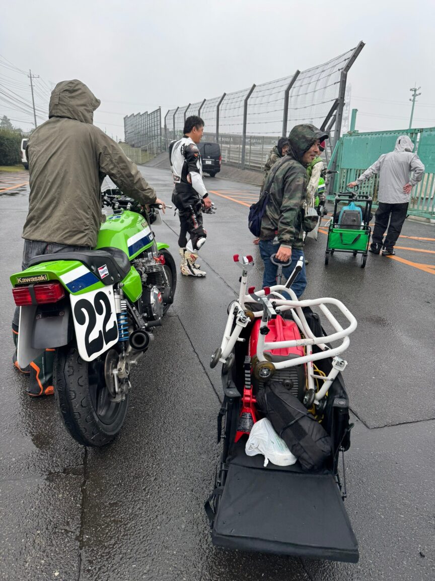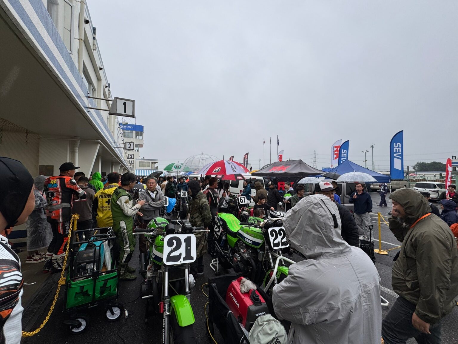 まもなくB組の予選開始。路面は完全ウエットです。転ばないことを第一優先に頑張ります。