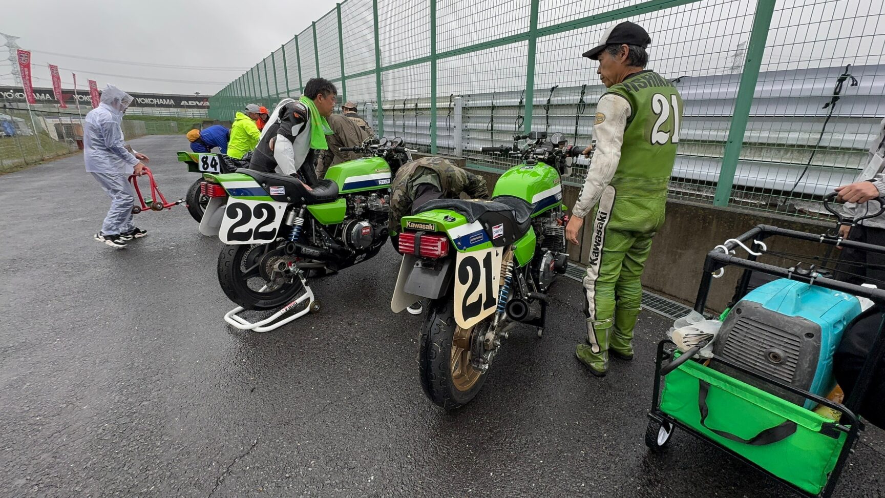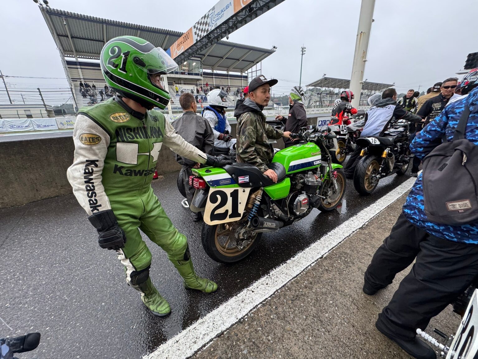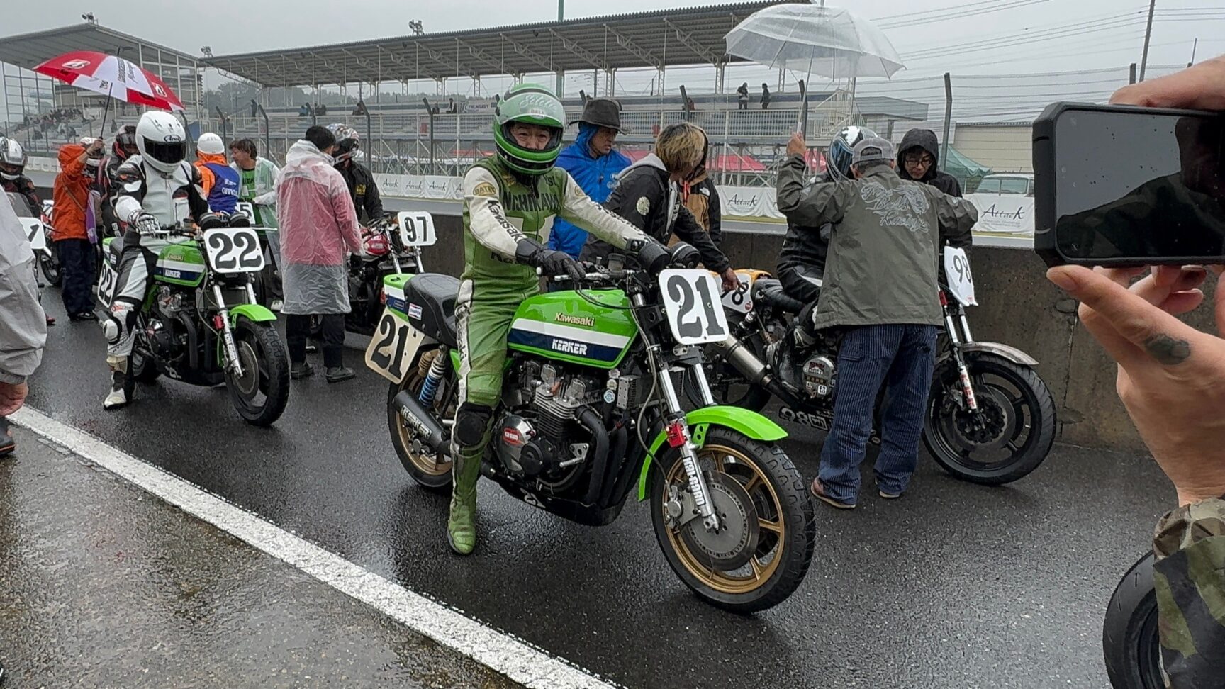 まもなくB組の予選開始。路面は完全ウエットです。転ばないことを第一優先に頑張ります。