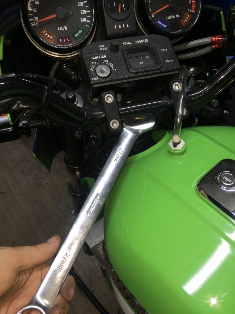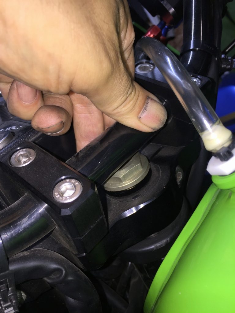 ステムボルトを締め付けると、ステムのガタは無くなりますがステアリングのフリクションがかなり増えます。ここも分解点検します。