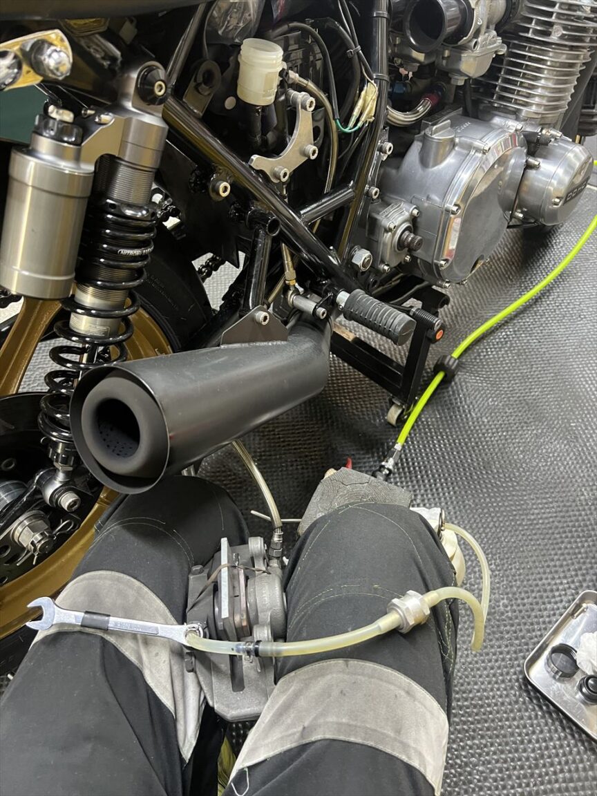 続いてリヤへ。同じくフルード交換します。
