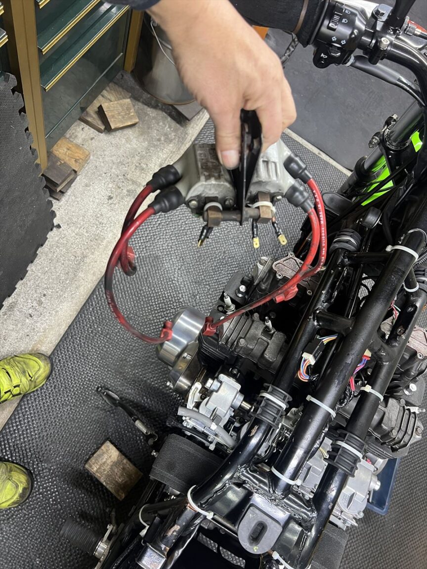エンジン上にあるイグニッションコイルも邪魔になるので外します。